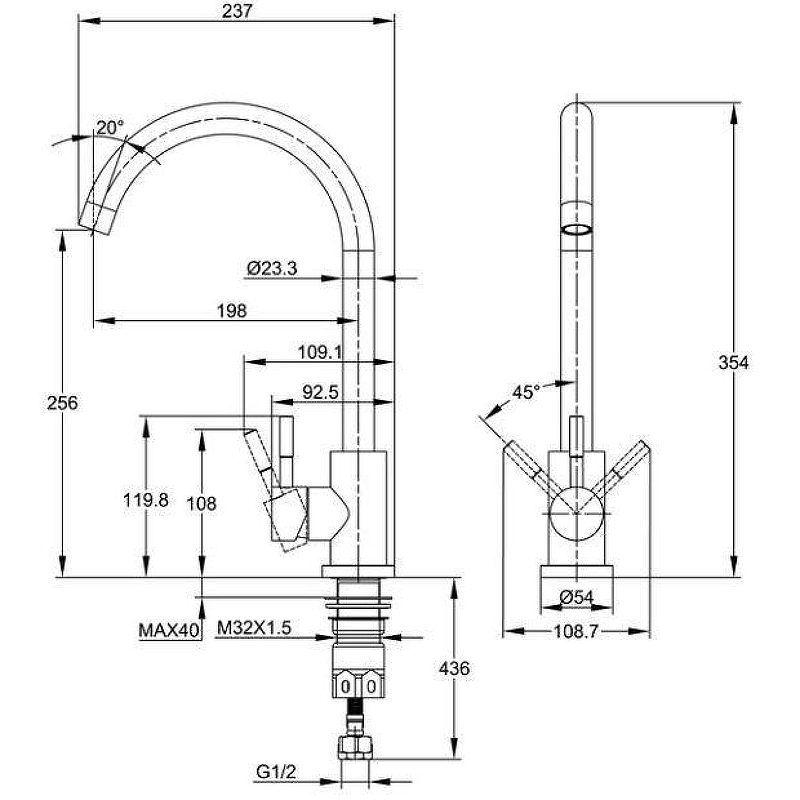 Cersanit 68243 Смеситель для кухни COMO однорычажный черный