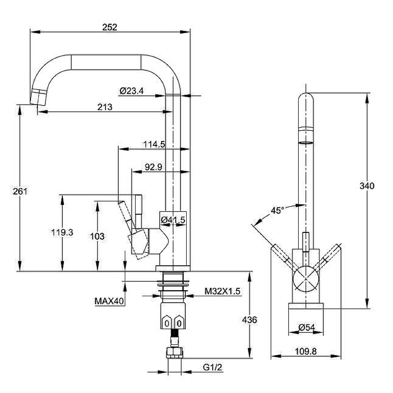 Cersanit 68246 Смеситель для кухни COMO однорычажный с п-образным изливом черный