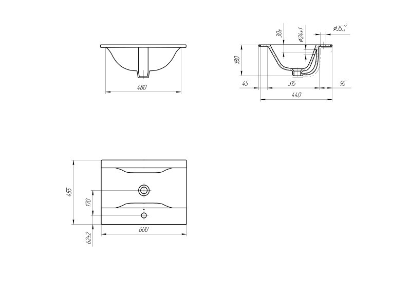 Cersanit S-UM-On60/1 Раковина мебельная ONTARIO 60 1 отв.