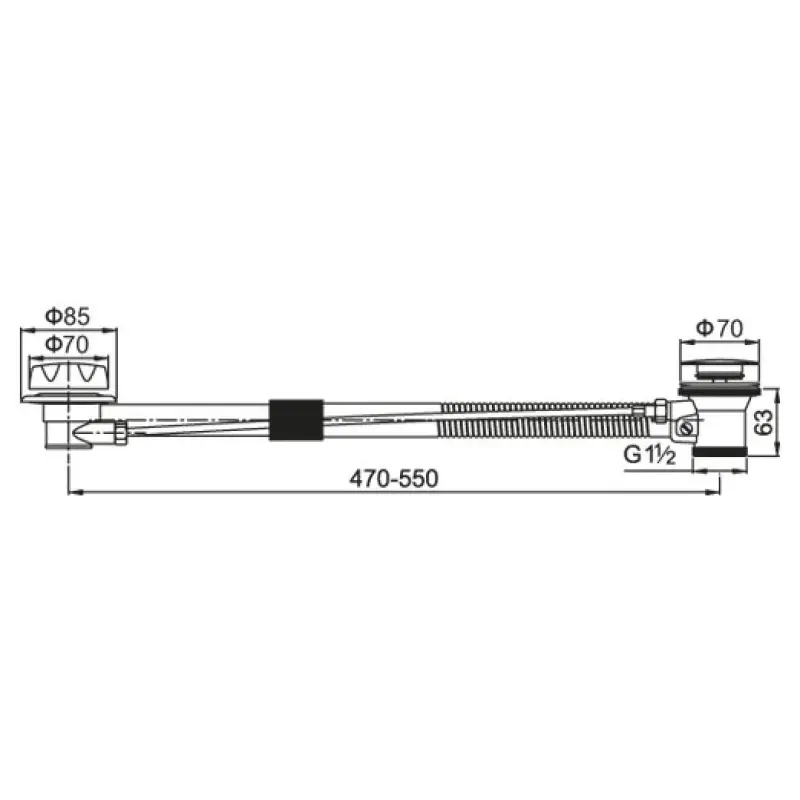 Слив-перелив полуавтомат для акриловой ванны медно-латунный, отделка хром.