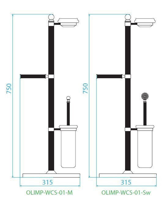 Напольная стойка c держателем туалетной бумаги, щёткой для унитаза и держателем мыльницы Cezares Olimp OLIMP-WCS-03/24-M.