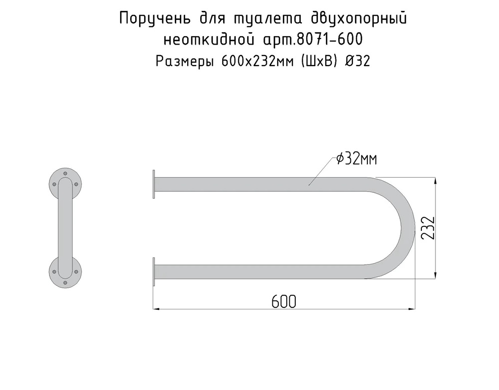 Доступная страна 8071-600 Поручень для раковины двухопорный 600мм Ø 32