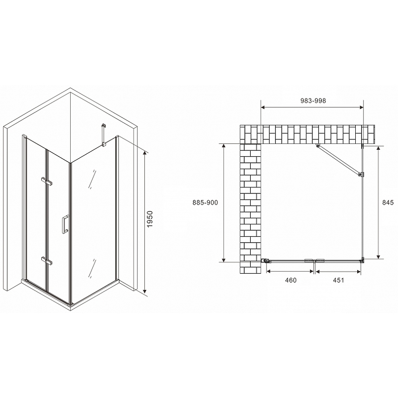 • Размеры (ШхВхД): 998х1950х900 мм.