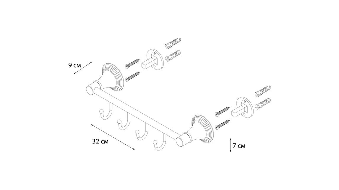Fixsen LUKSOR Планка 4 крючка  FX-71605-4B