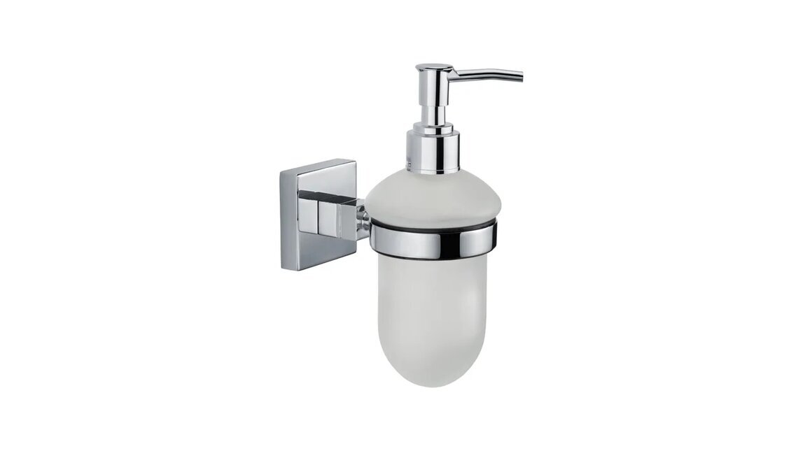 Подвесной металлический дозатор жидкого мыла Fixsen Metra FX-11112 с квадратным основанием в лаконичном дизайне, который подойдет к любому современному интерьеру ванной комнаты.