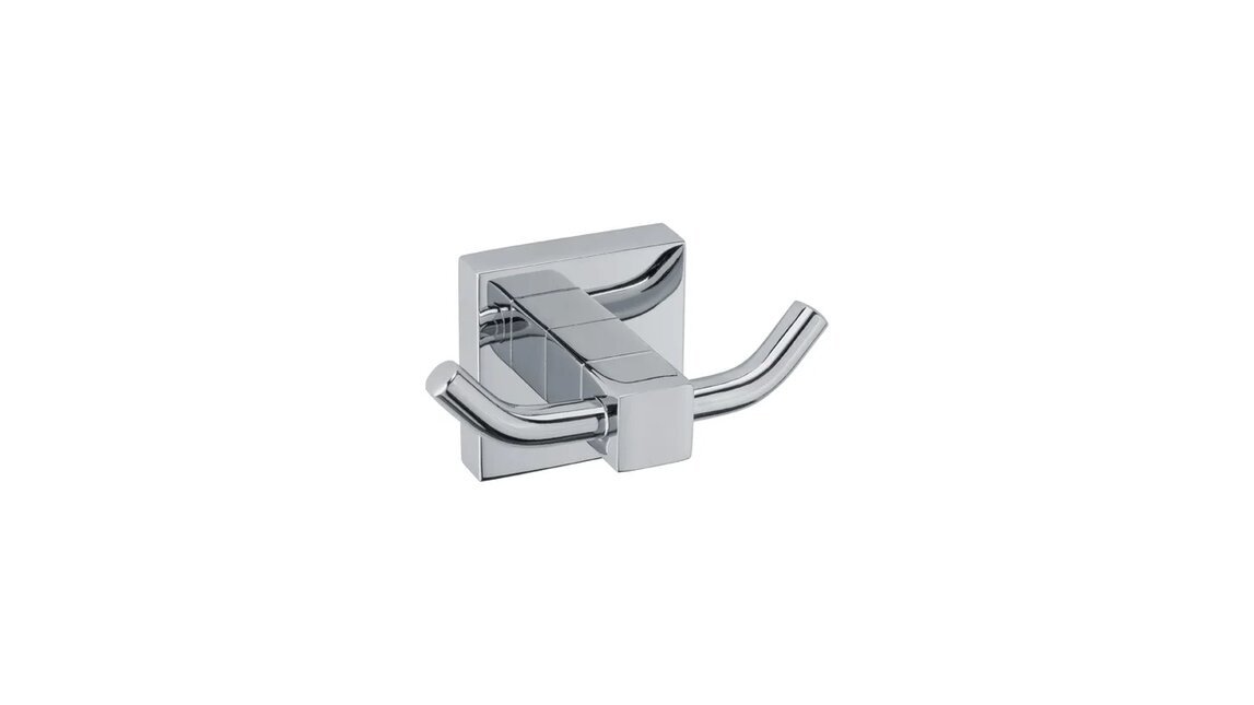 Металлический двойной крючок для полотенец Fixsen Metra FX-11105A с квадратным основанием в лаконичном дизайне, который подойдет к любому современному интерьеру ванной комнаты.