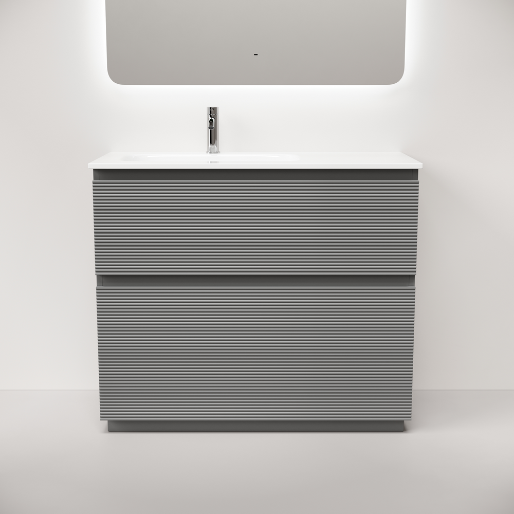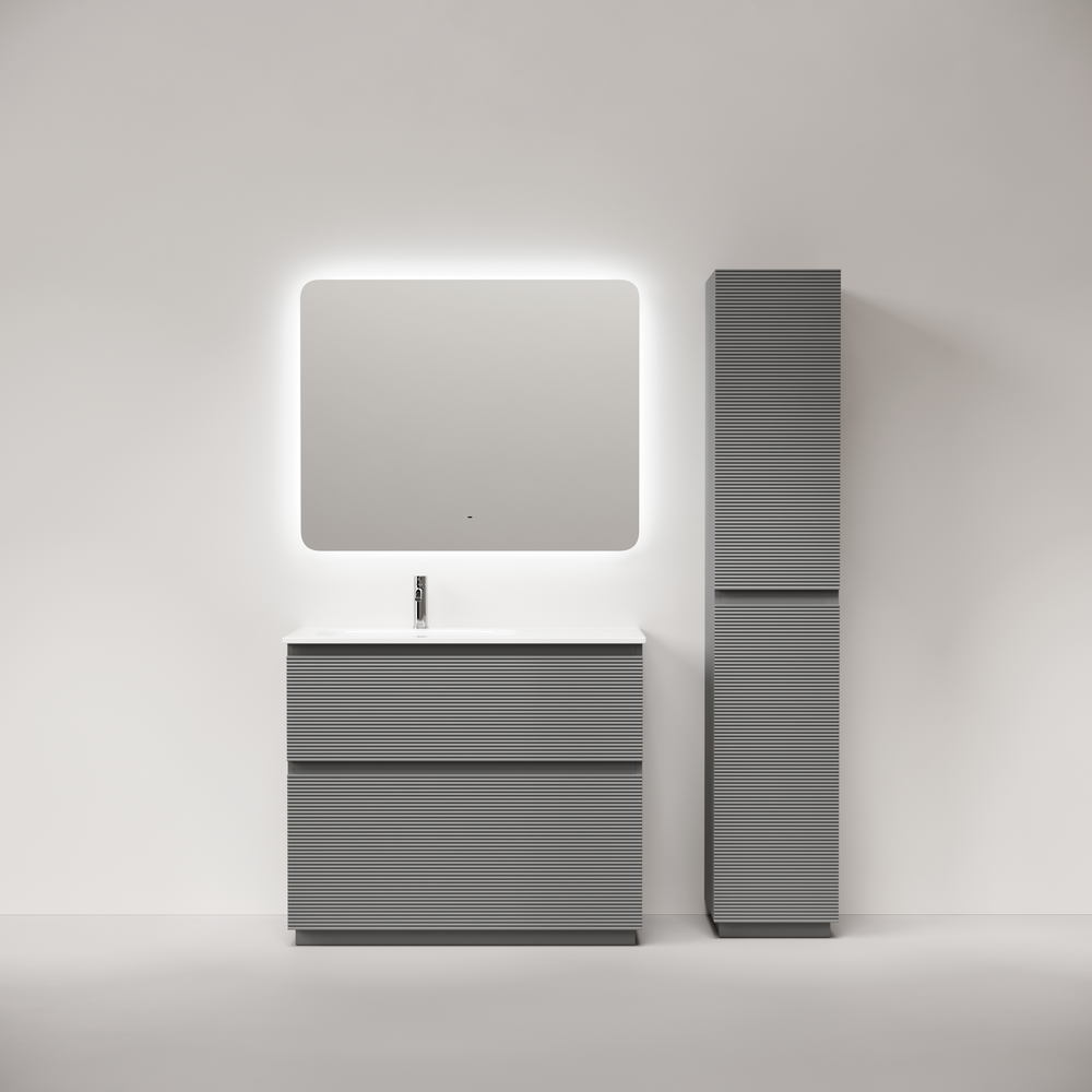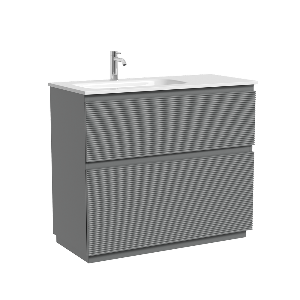 FL100FLES Тумба напольная SANCOS Folk левая 995х445х850, два ящика с доводчиками, Ergraut soft