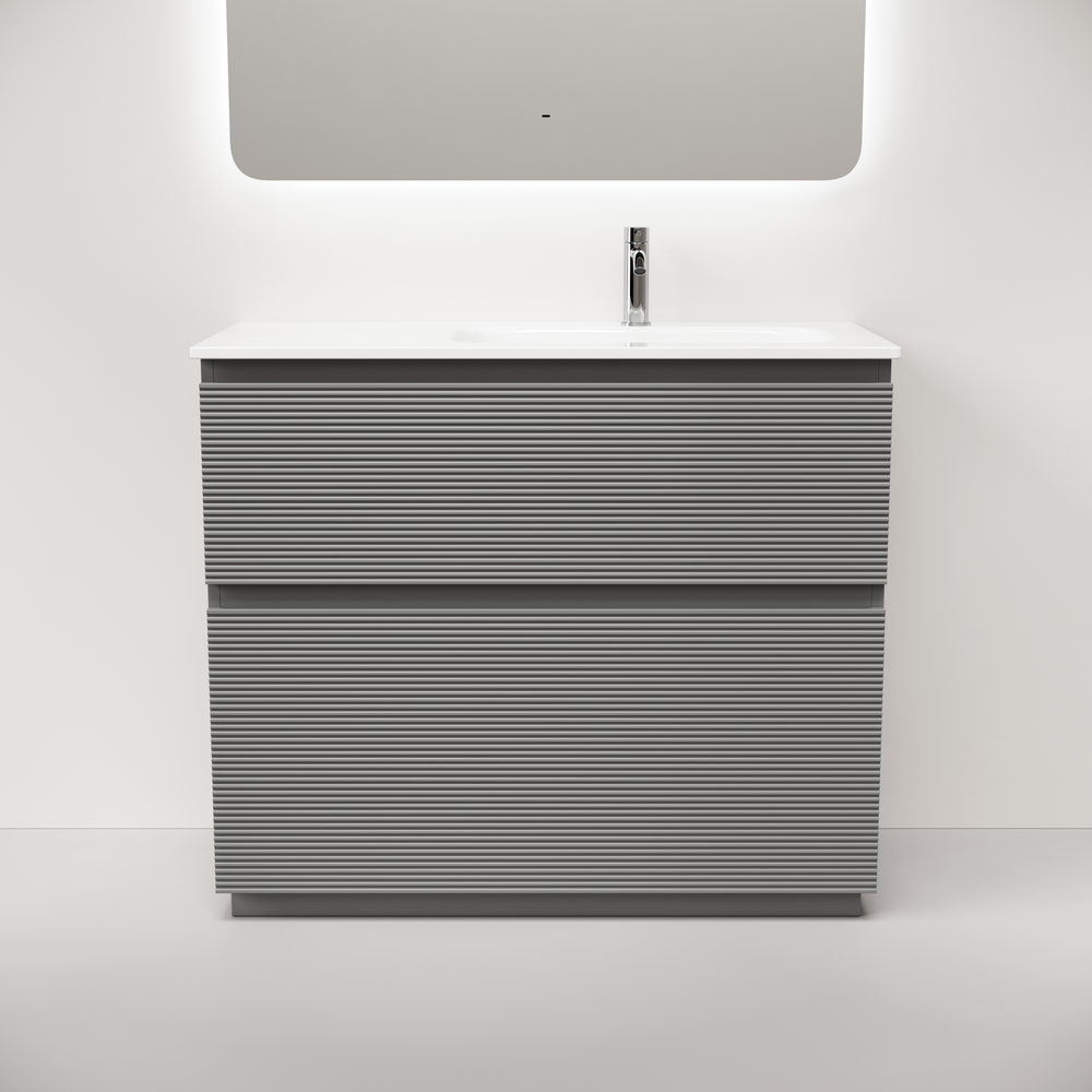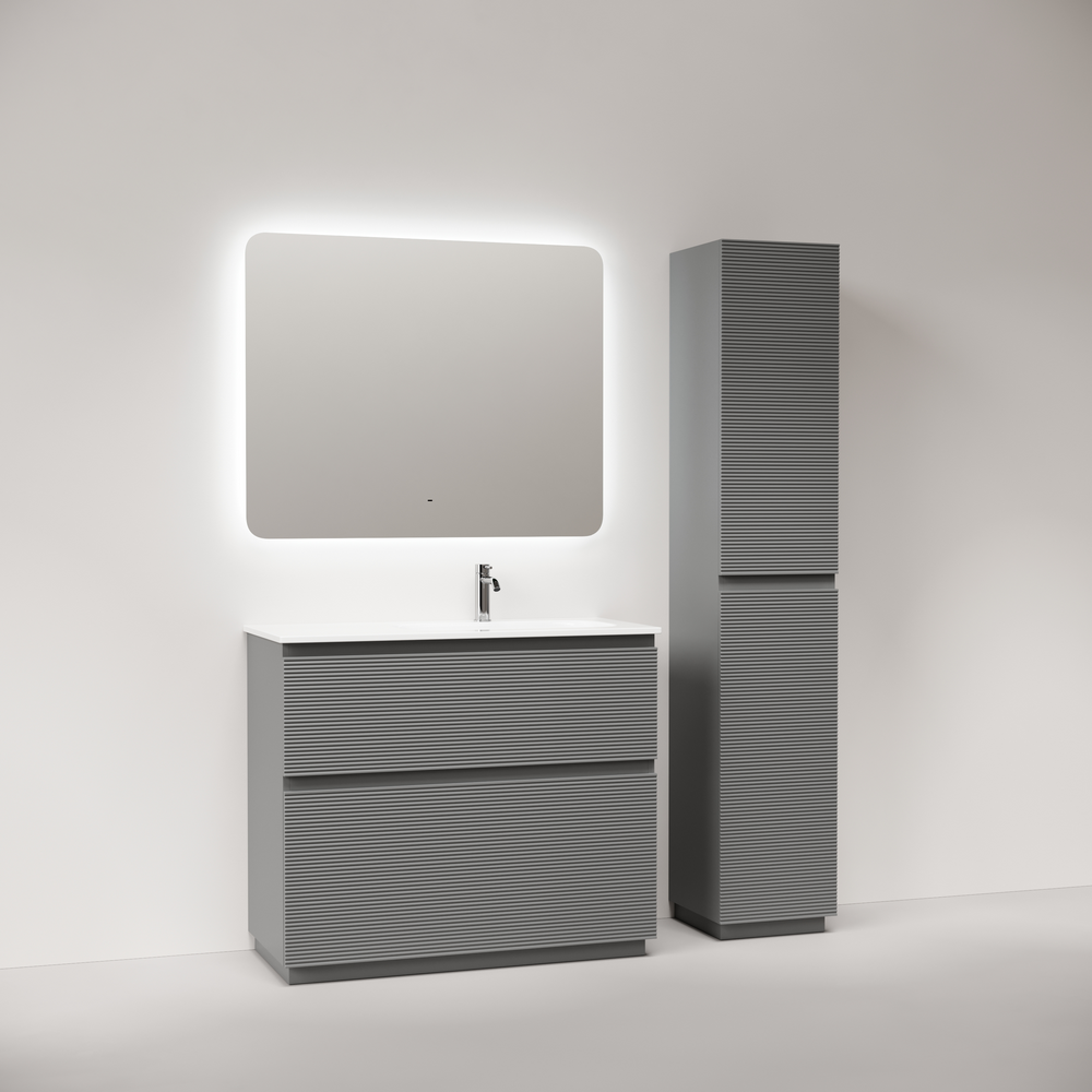 FL100FRES Тумба напольная SANCOS Folk правая 995х445х850, два ящика с доводчиками, Ergraut soft