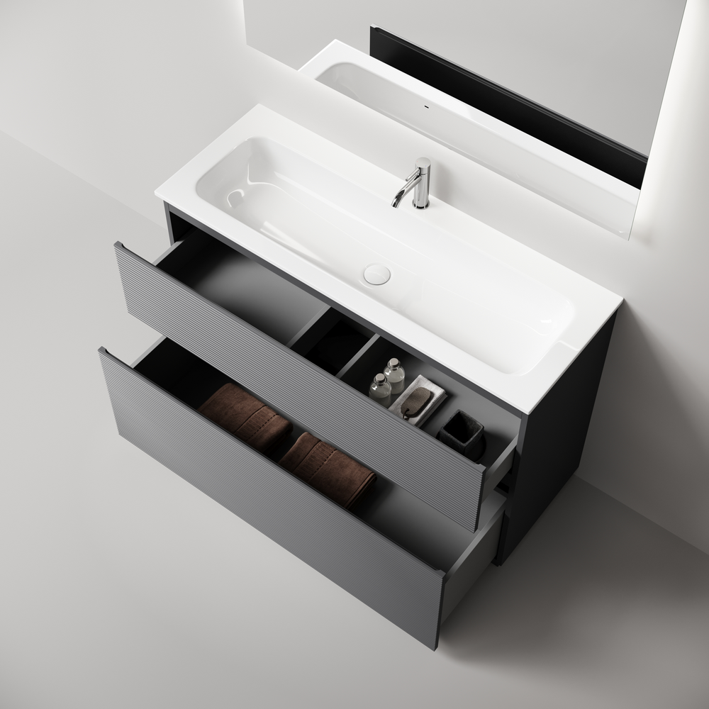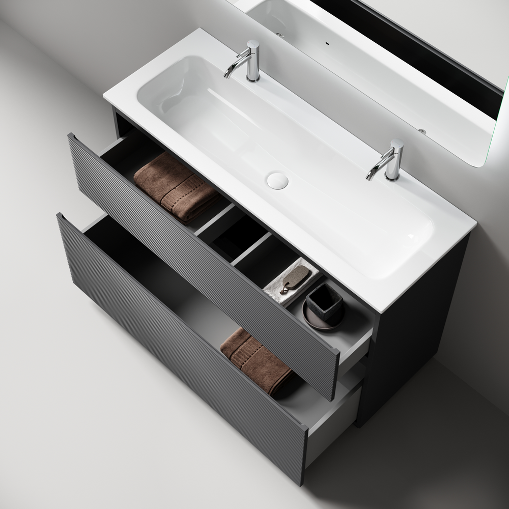 FL120FGS Тумба напольная SANCOS Folk 1190х445х850, два ящика с доводчиками, Grey soft