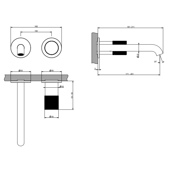 GESSI HABITO DIAMANTATO 70688#727 Смеситель для раковины настенный встраиваемый, однорычажный, цвет Brushed Brass PVD