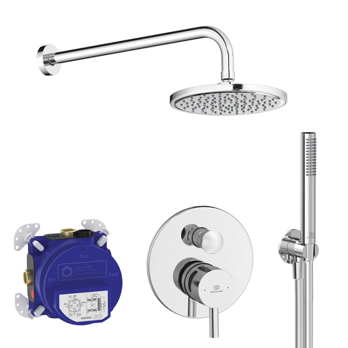 Ideal Standard Ceraline Душевой комплект: встраиваемый смеситель для ванны/душа, верхний душ Ø20см., держатель, лейка для душа и шланг 175см., цвет: хром
