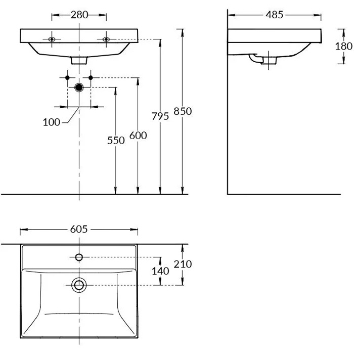 Kerama Marazzi Cubo Раковина 60х48.5х18см., подвесная, мебельная, 1 отв., с переливом, цвет: белый глянцевый