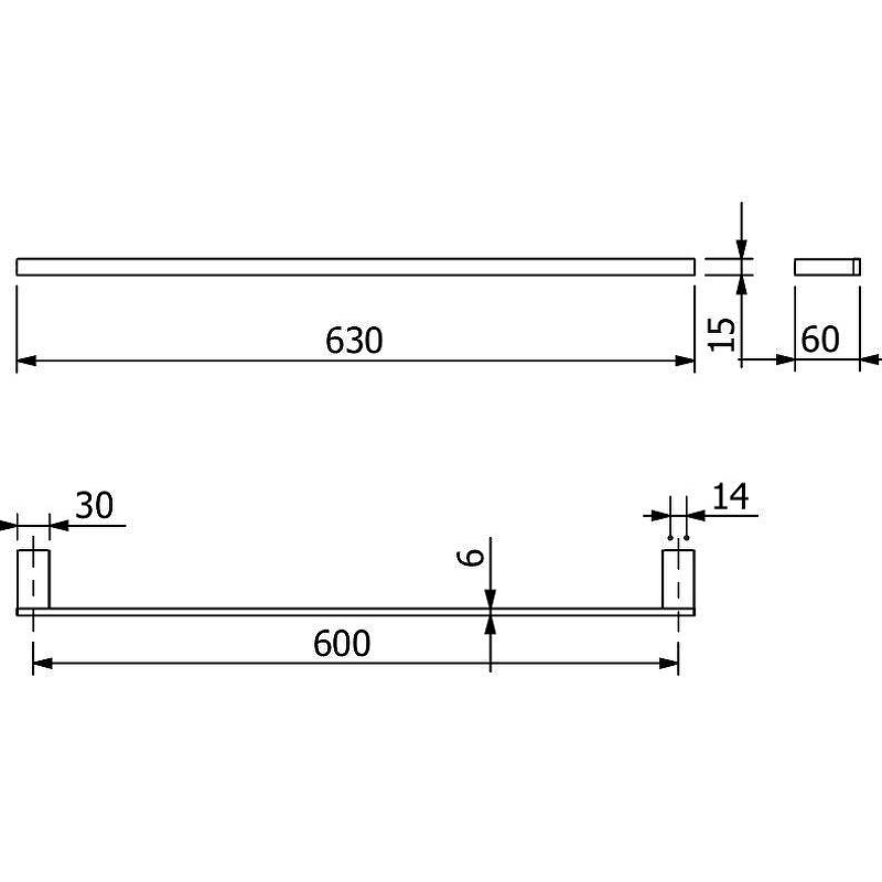 • Размеры (ШхВхД): 630х15х60 мм.