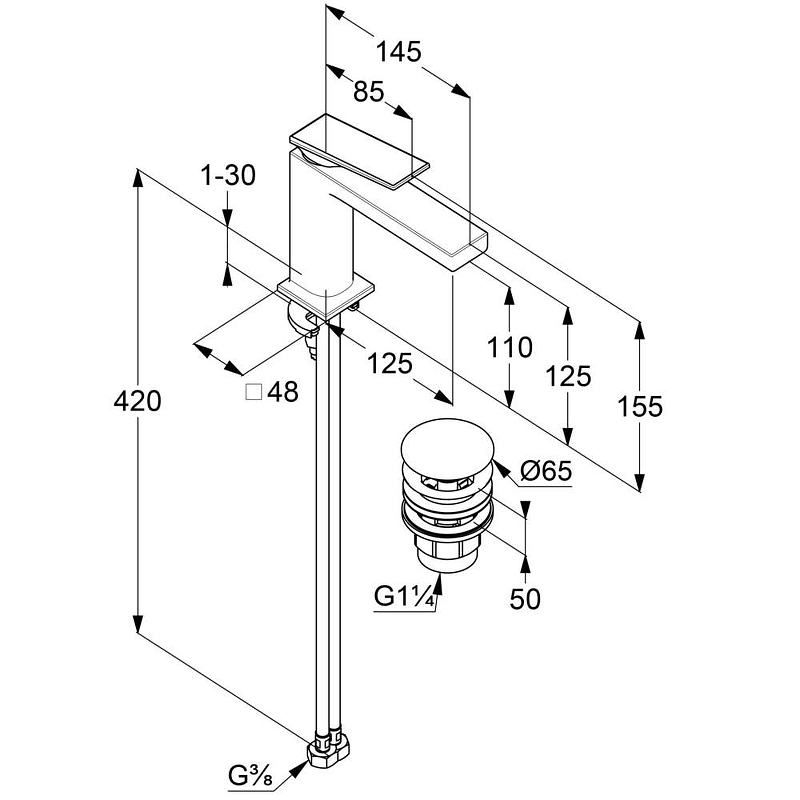 Смеситель для раковины Kludi Decus 542885375 с донным клапаном.