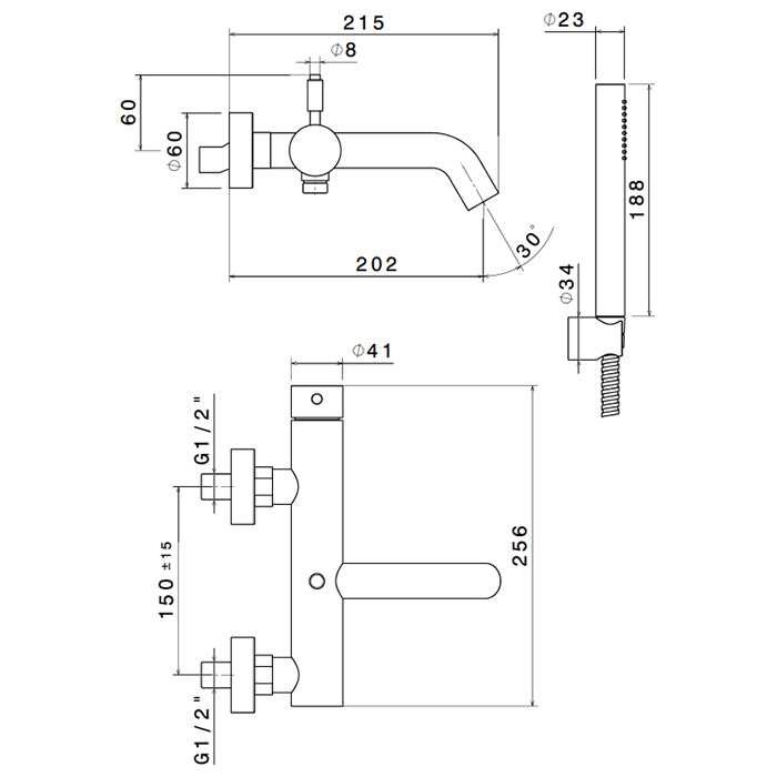 Newform X-Steel 316 69640CX.59.067 Смеситель для ванны с ручным душем, кроншт., шланг: 150 см, цвет: PVD Br. copper bronze