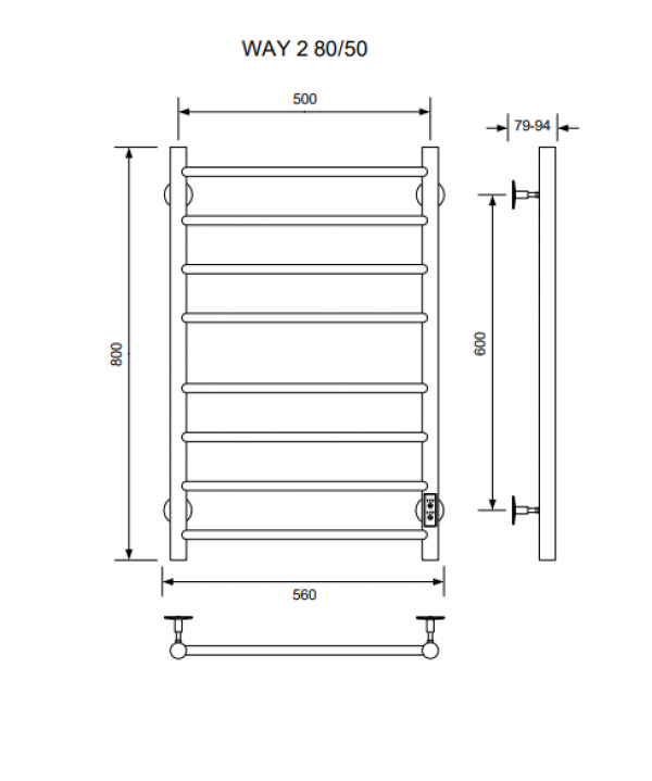Ника WAY-2 80/50 U (RAL9016) Полотенцесушитель