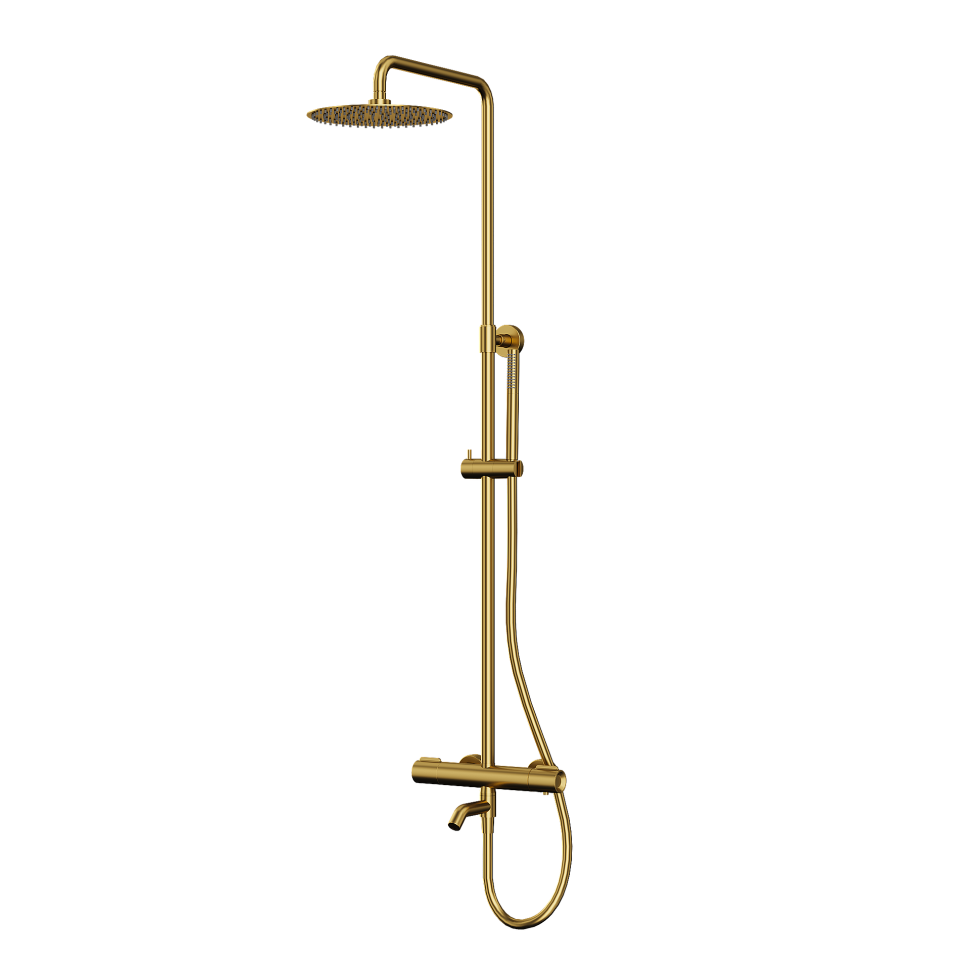 Paini Cox 78PJ687THSSD250F1B Душевая система с термоcтатом, поворотный излив, брашированное золото PVD