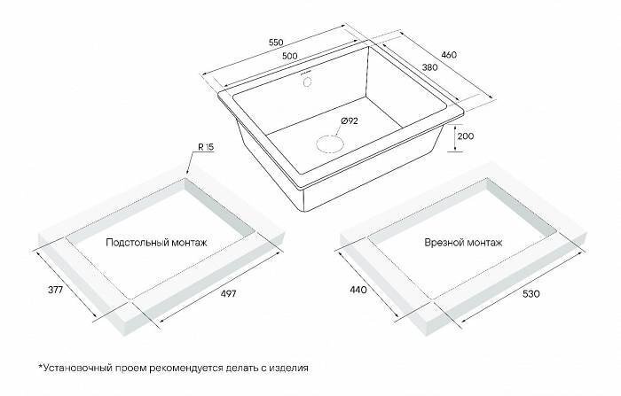 Paulmark GERA 60 PM205546-AN Мойка для кухни 55*46 см (антрацит)
