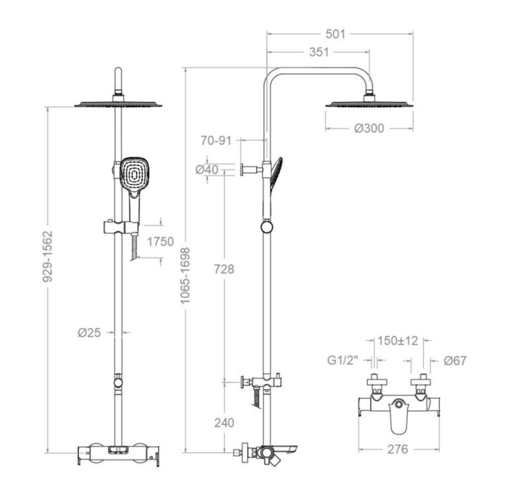 Ramon Soler BLAUTHERM 935613RP300OC Душевая система с изливом и с регулировкой высоты, золото