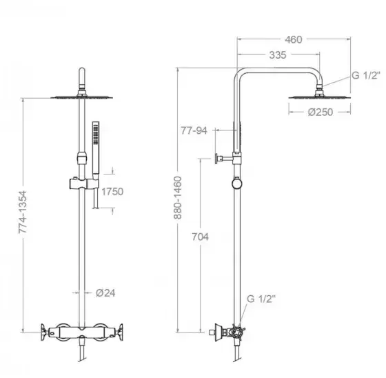 Ramon Soler Душевая термостатическая система без излива с регулировкой высоты ADAGIO 915401RM250