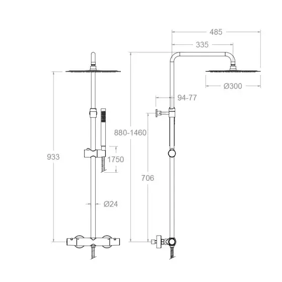 Ramon Soler Душевая термостатическая система без излива с регулировкой высоты TZAR 345402RM300