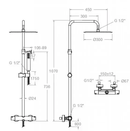 Ramon Soler Душевая термостатическая система без излива с регулировкой высоты URBAN CHIC 215401RK300NM чёрный