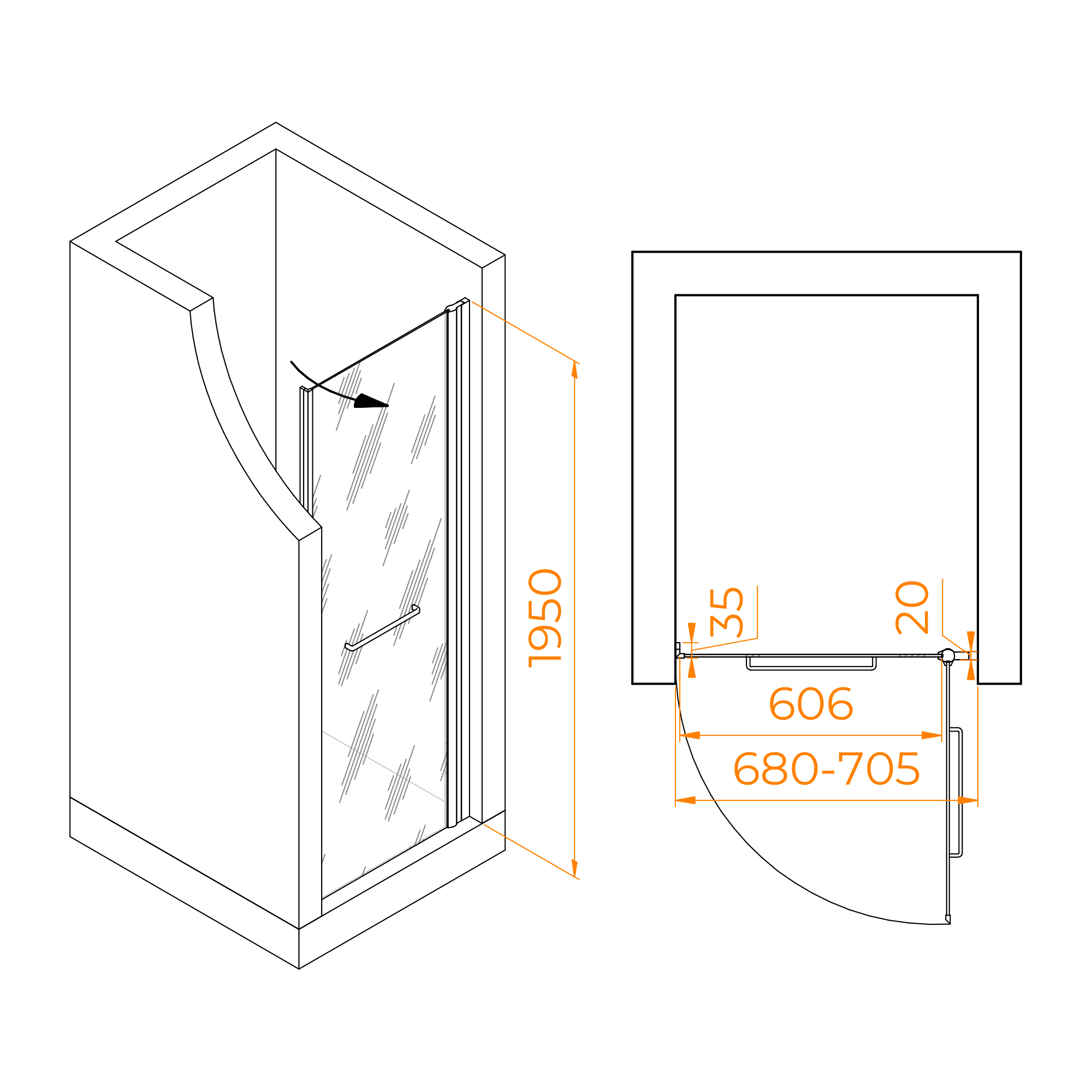 RGW 020810307-24c Душевая дверь  70*195 RGW PA-103-B Чёрный/Матовое/6 мм (Хим)