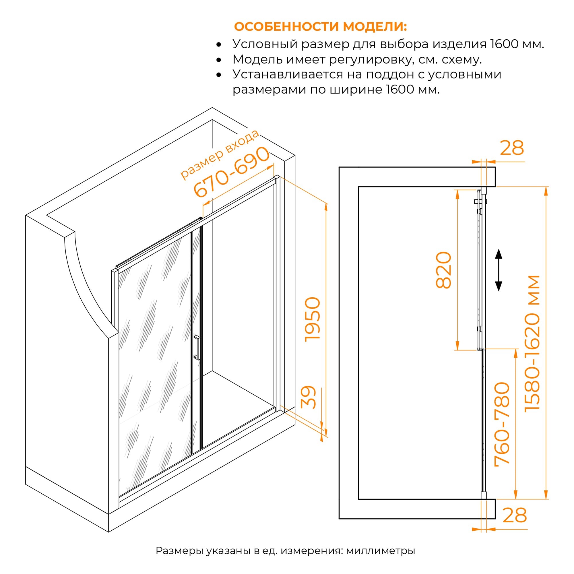 RGW 030811416-110 Душевая дверь 160*195 RGW PA-114-Gr Серый/Прозрачное/6 мм (158-162) (EasyClean)