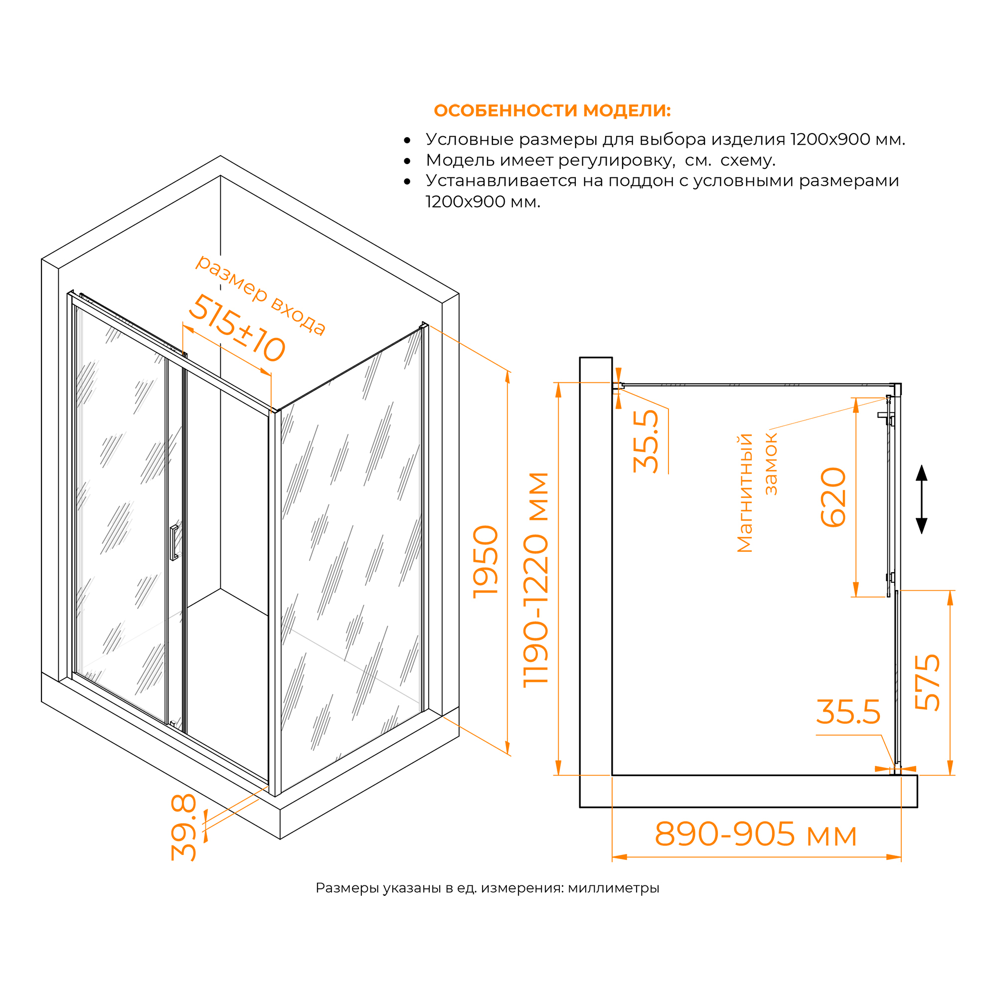 RGW 060913329-41 Душевой уголок 120*90*195 RGW CL-133 (CL-13 + Z-03) Прямоуг./Хром/Cora/6 мм