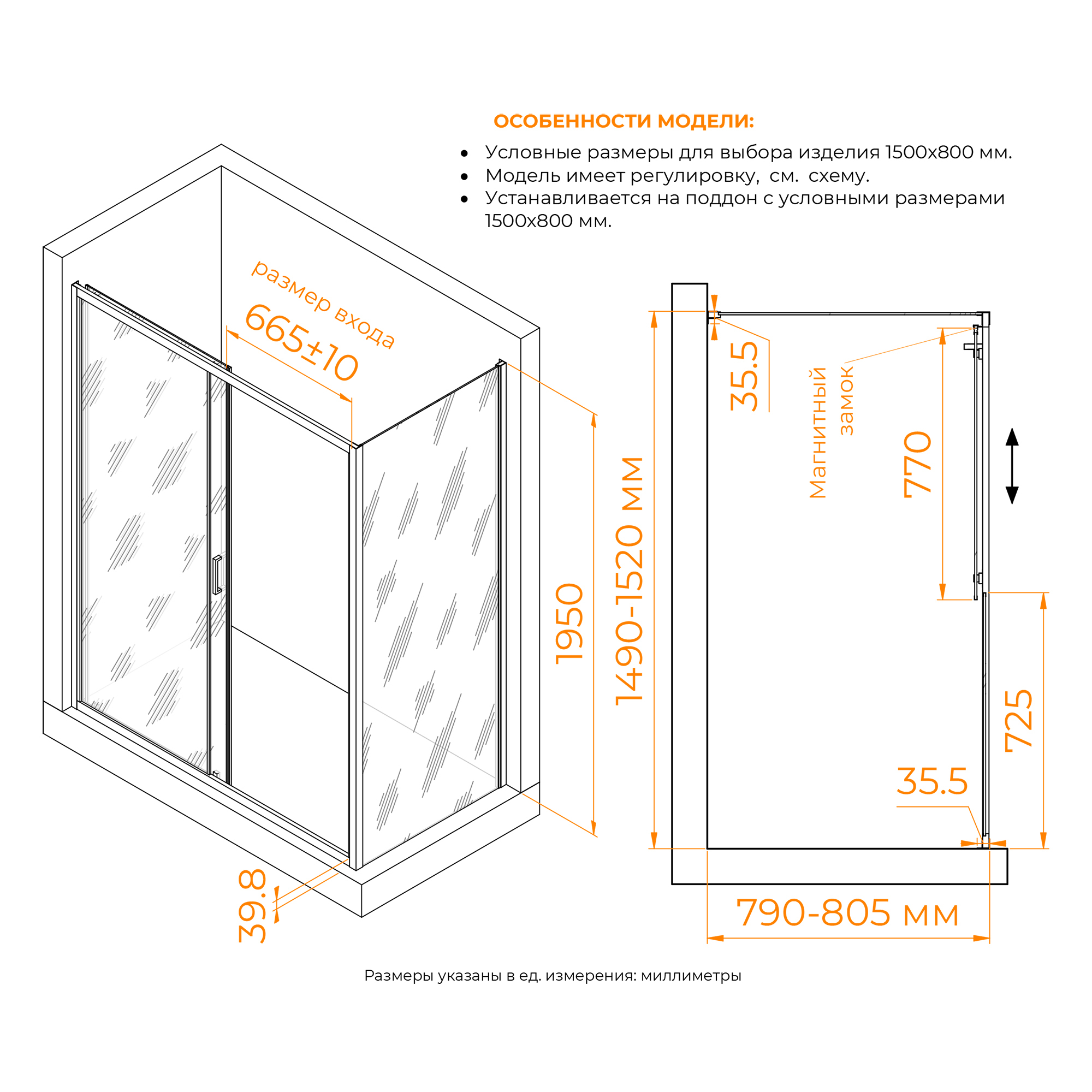 RGW 060913358-41 Душевой уголок 150*80*195 RGW CL-133 (CL-13 + Z-03) Прямоуг./Хром/Cora/6 мм
