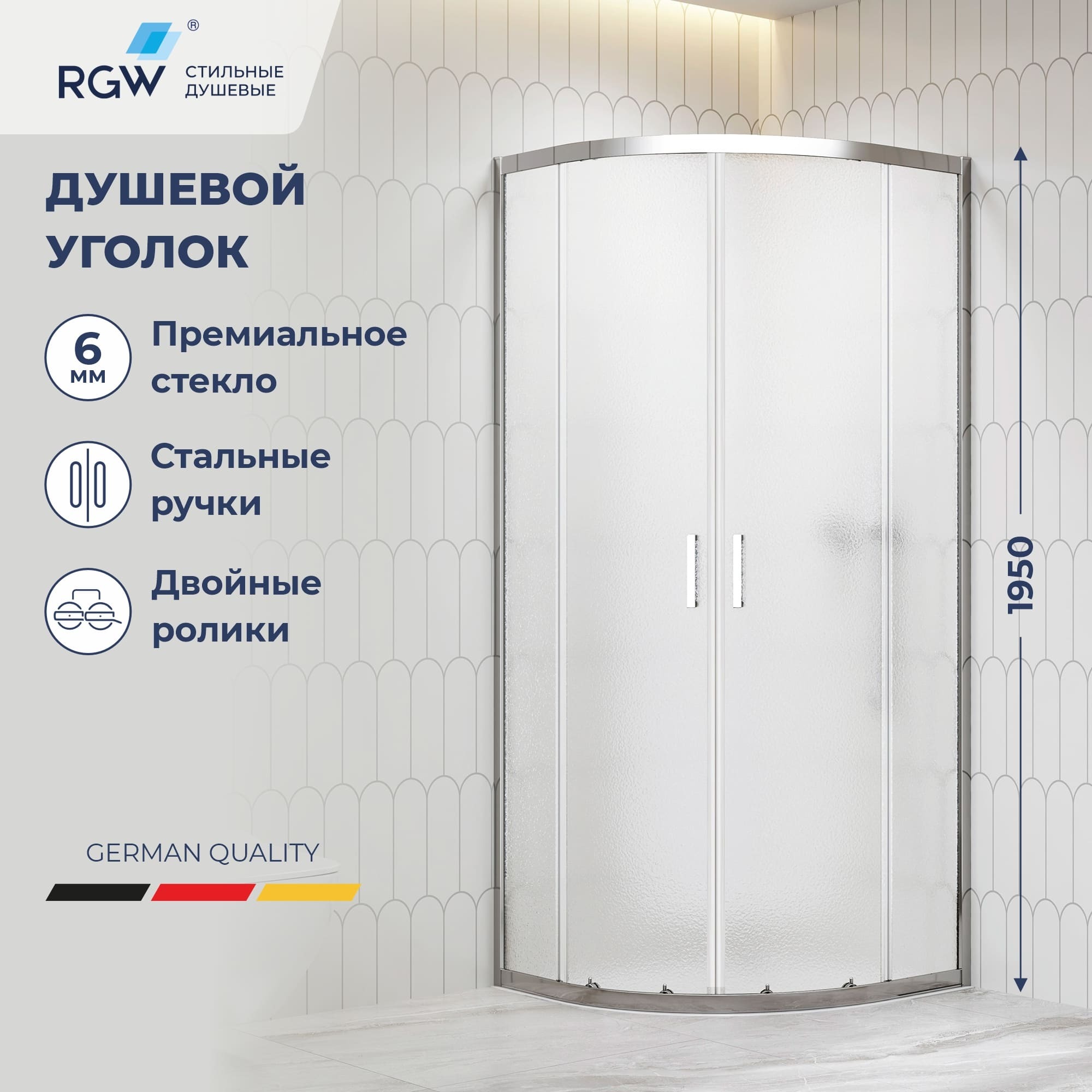RGW 06095688-41 Душевой уголок 80*80*195 RGW CL-56 Полукруг/Хром/Cora/6 мм