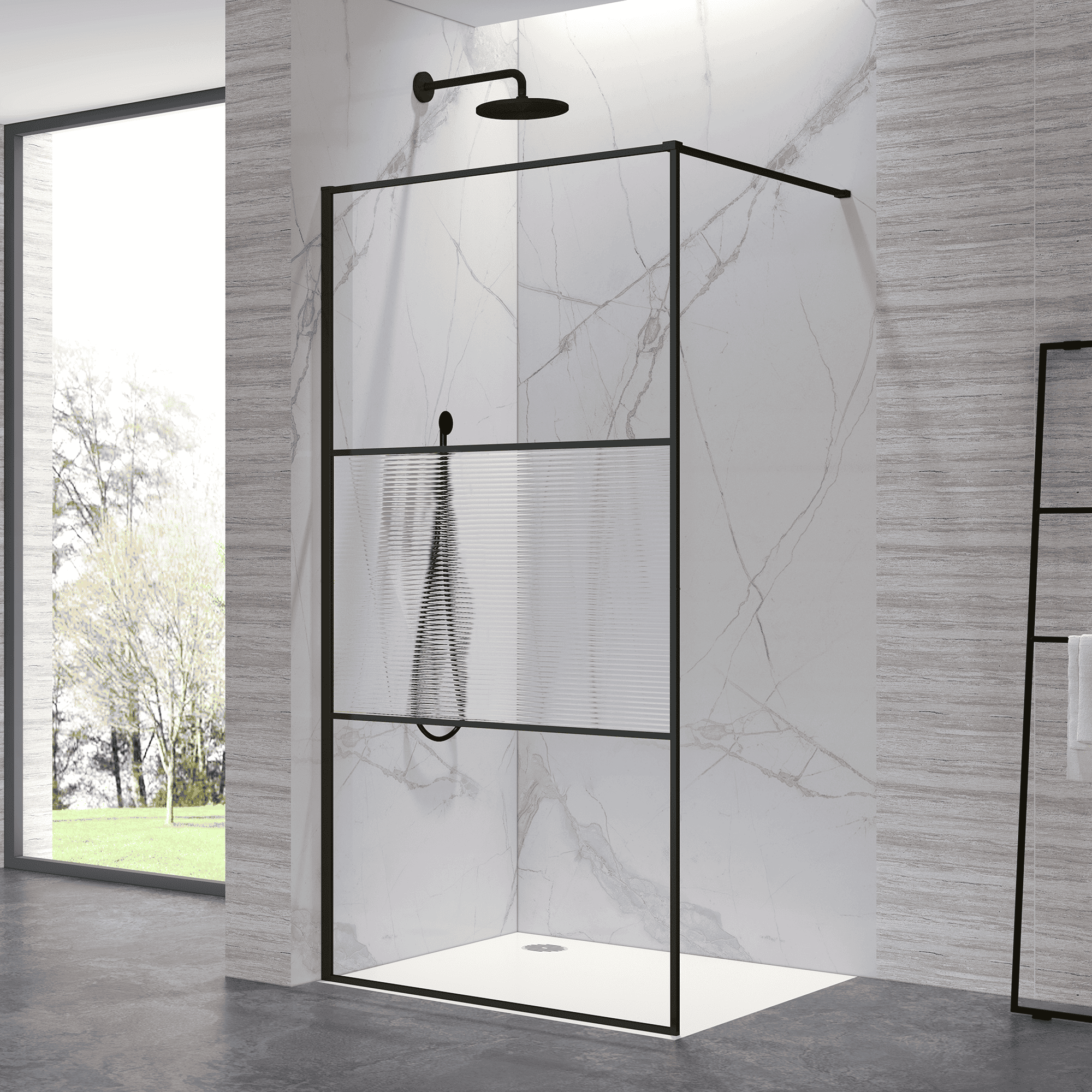 RGW 06100910-224 Душевая перегородка 100*200 RGW WA-09-B Чёрный/Ribbed Line/8 мм