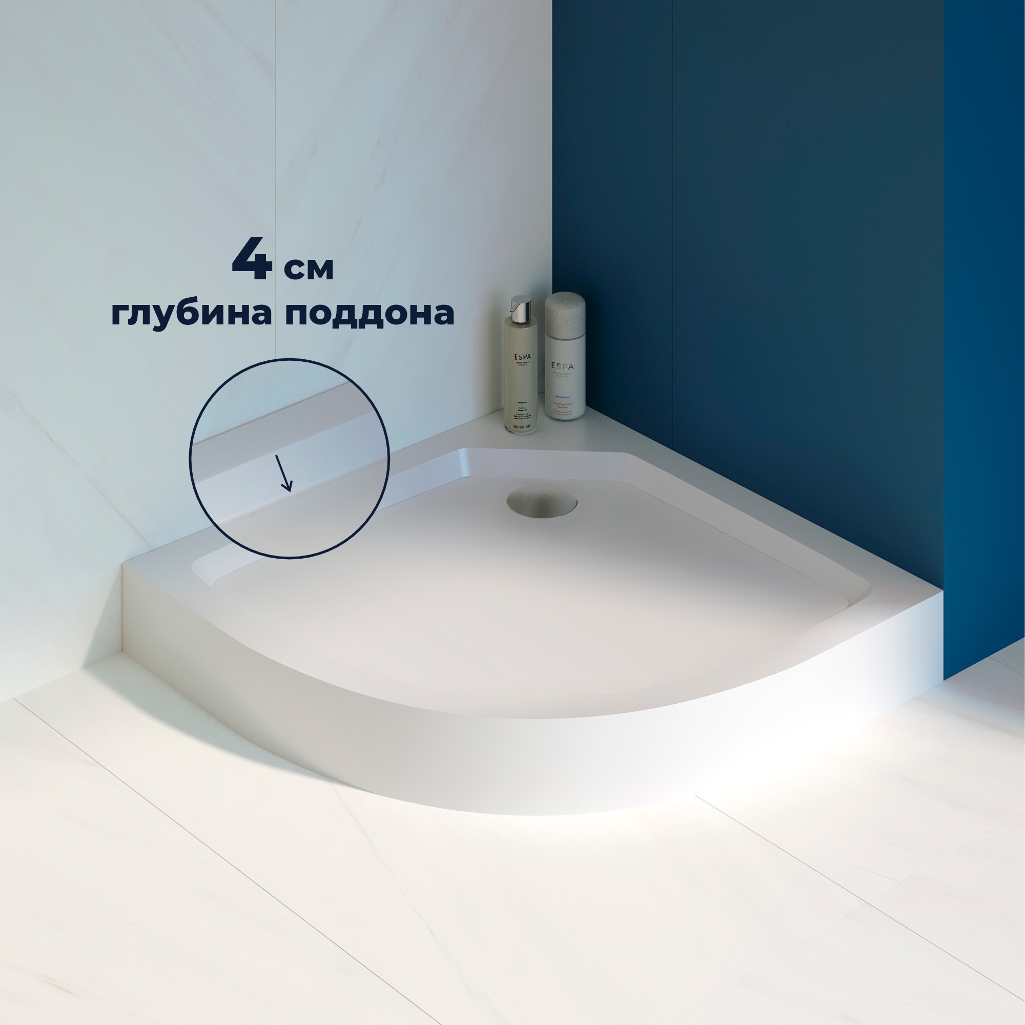 RGW 12350488-0101 Душевой поддон 80*80*14 RGW SMC/R-C-088W Белый/Полукруг (7 ножек в комплекте + сифон)