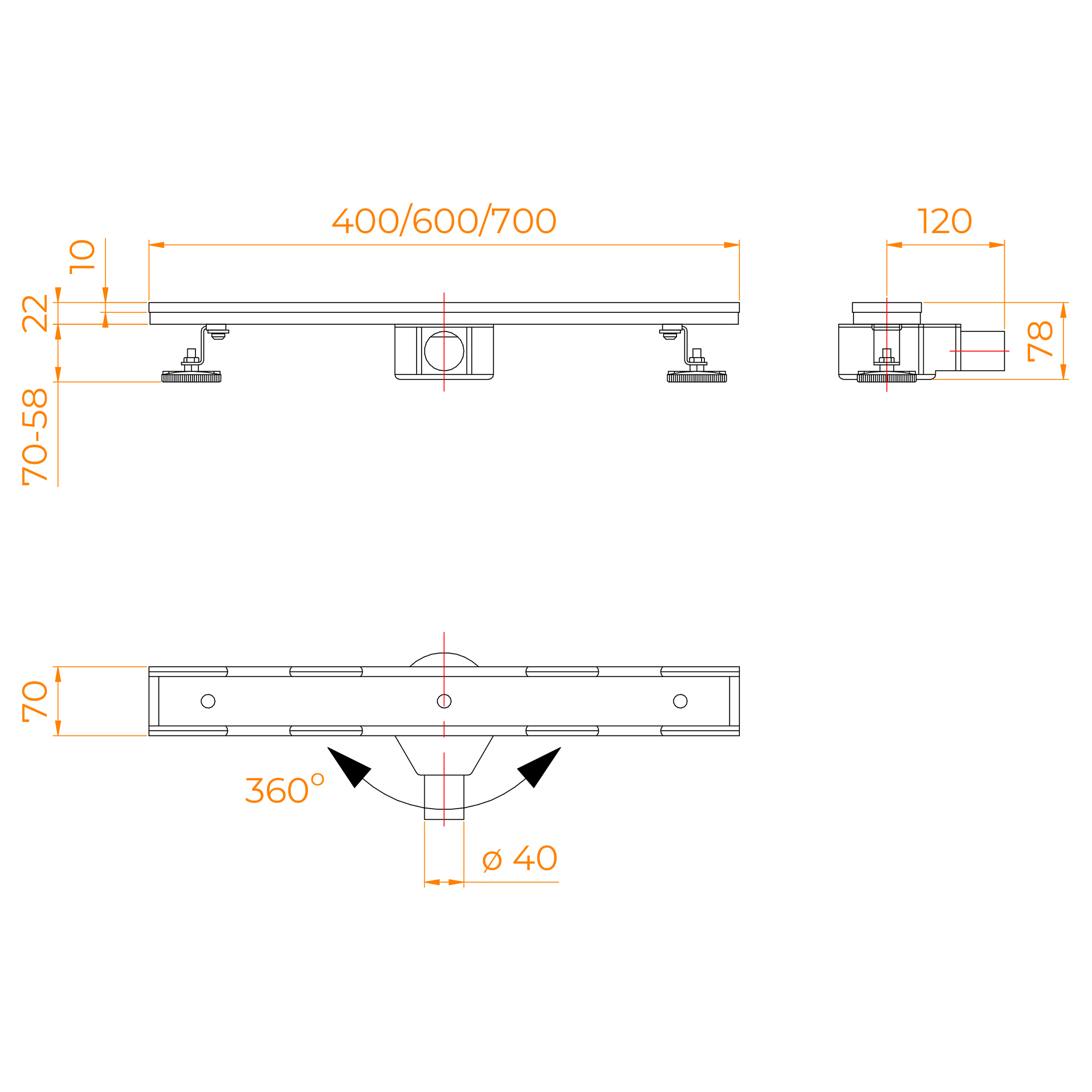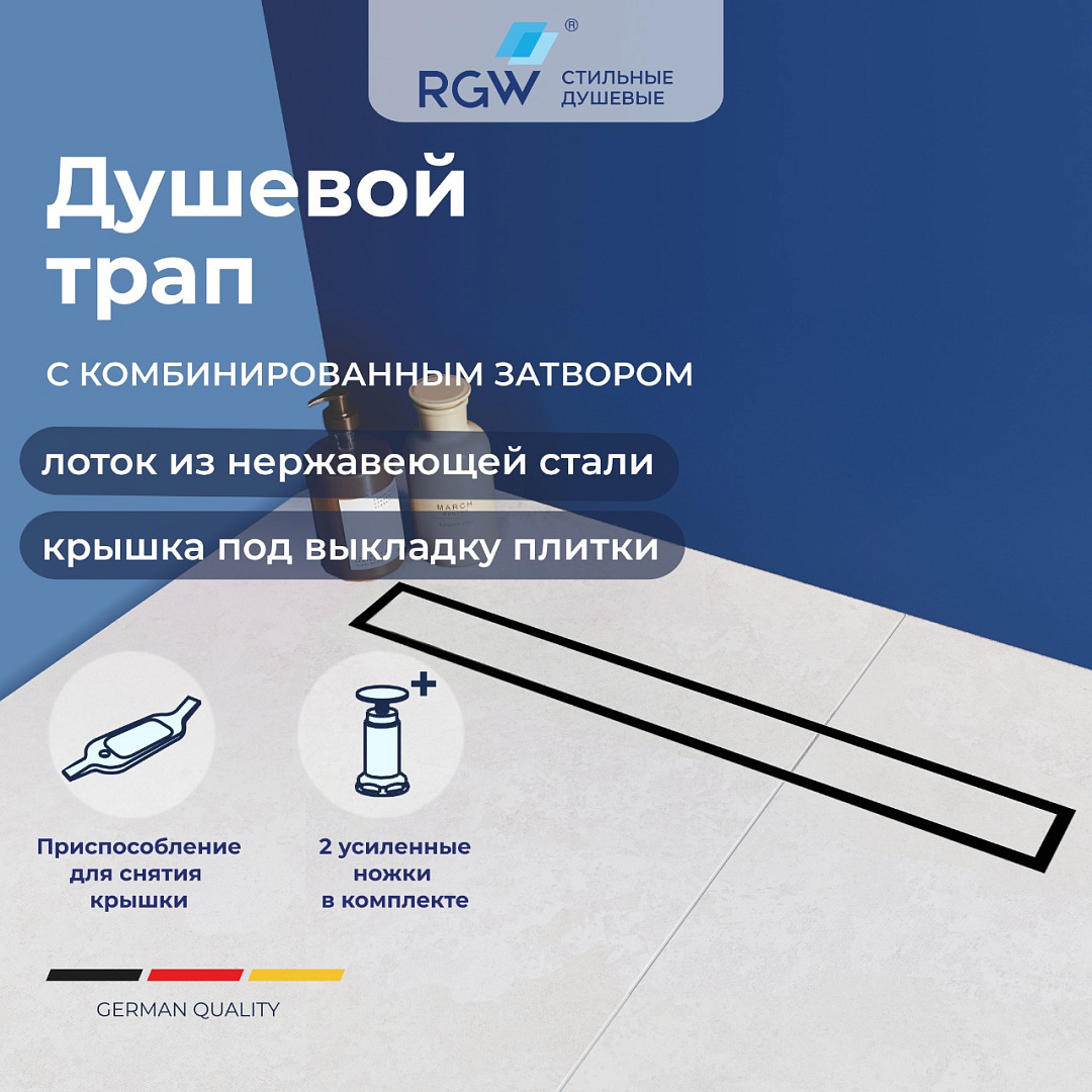 RGW 21210870-014 Душевой трап RGW SDR-08B-70 прямой 700 Черный ? 50 мм сифон + ножки