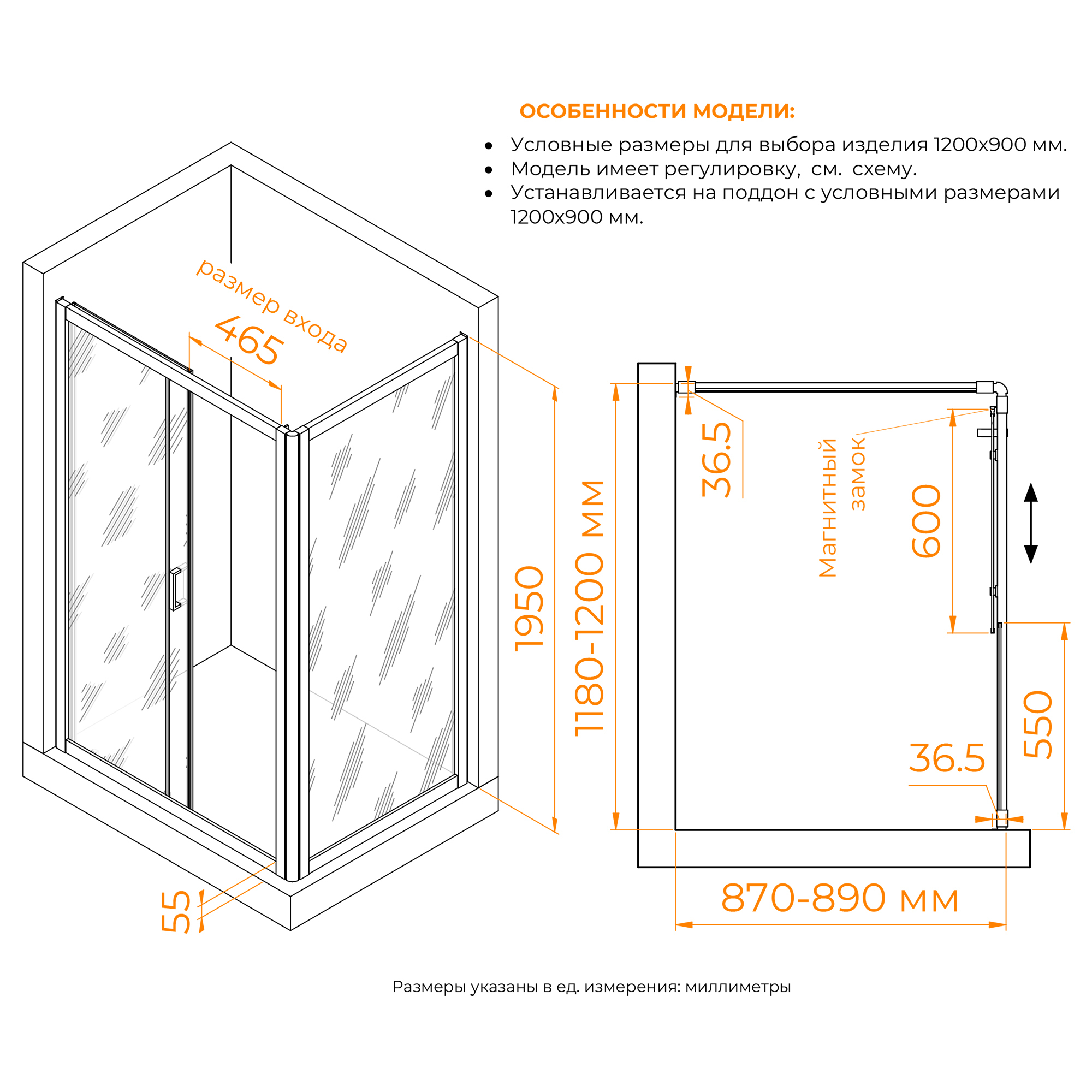 RGW 350804529-21 Душевой уголок 120*90*195 RGW PA-045 Прямоуг./Хром/Матовое/6 мм (2 уп. Easy)