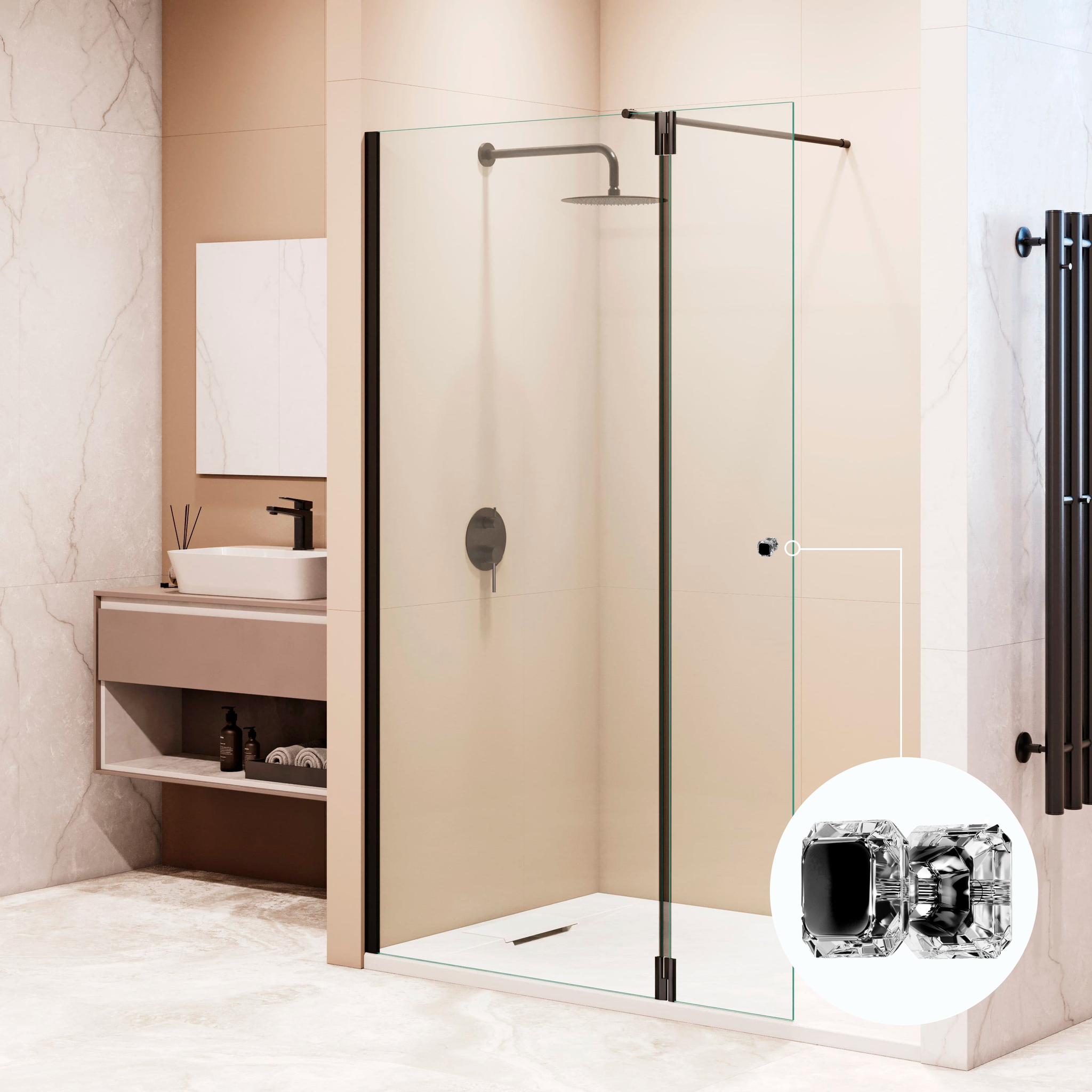 RGW 351005403-14 Душевая перегородка 100*30*195 RGW WA-054B (WA-010B + Z-072B) Чёрный/Прозрачное/8 мм