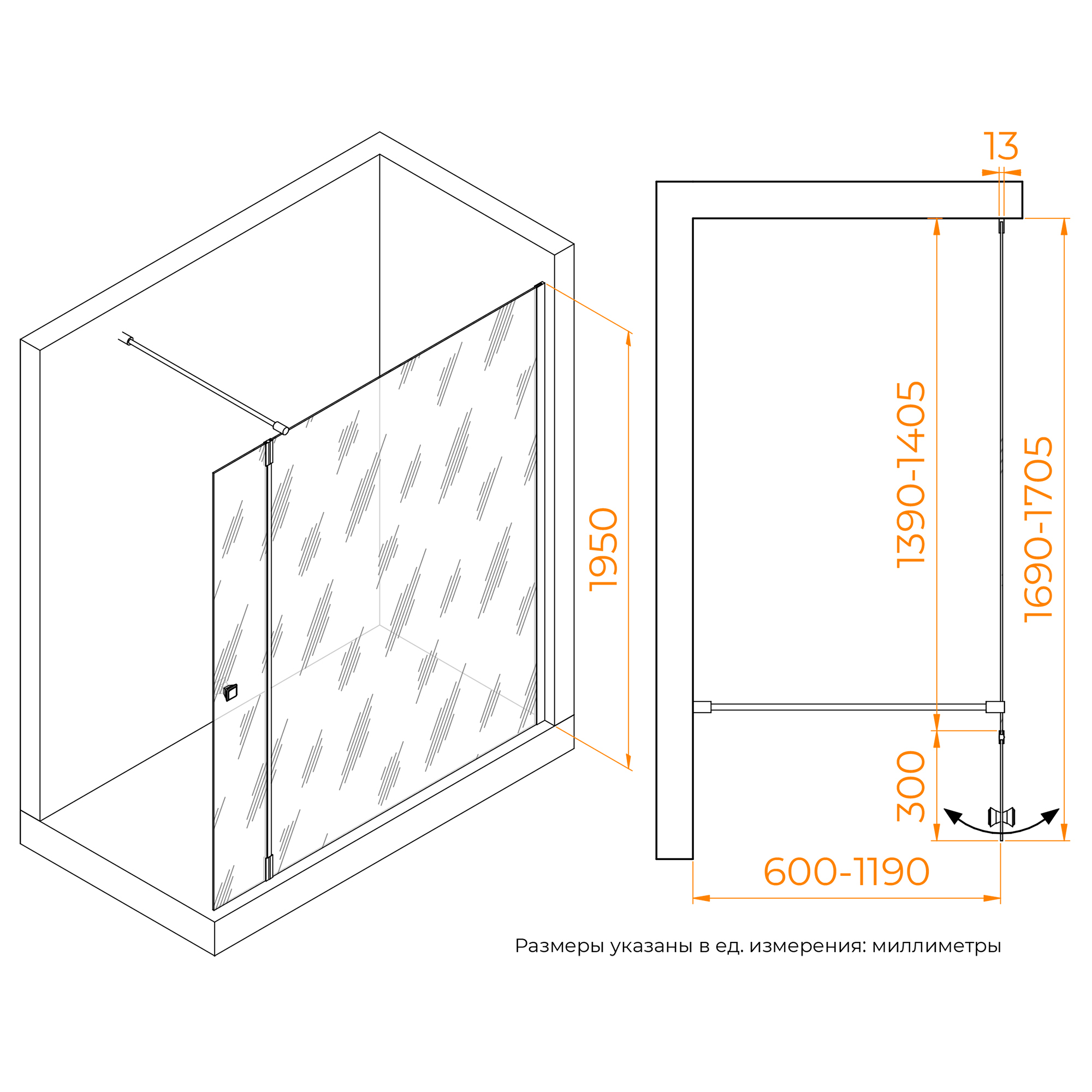 RGW 351005443-14 Душевая перегородка 140*30*195 RGW WA-054B (WA-010B + Z-072B) Чёрный/Прозрачное/8 мм