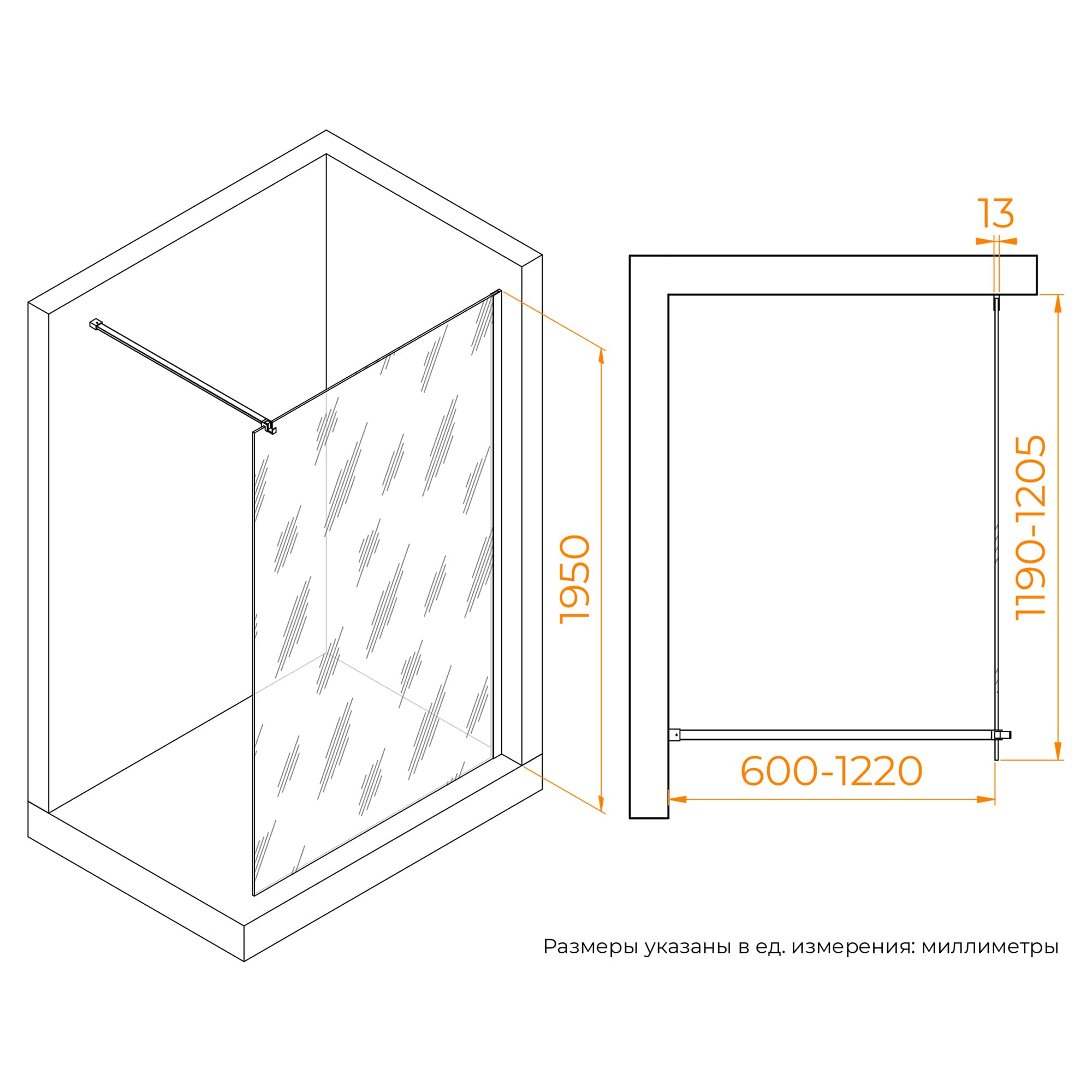 RGW 351021012-24 Душевая перегородка 120*195 RGW WA-210-B Чёрный/Матовое/8 мм