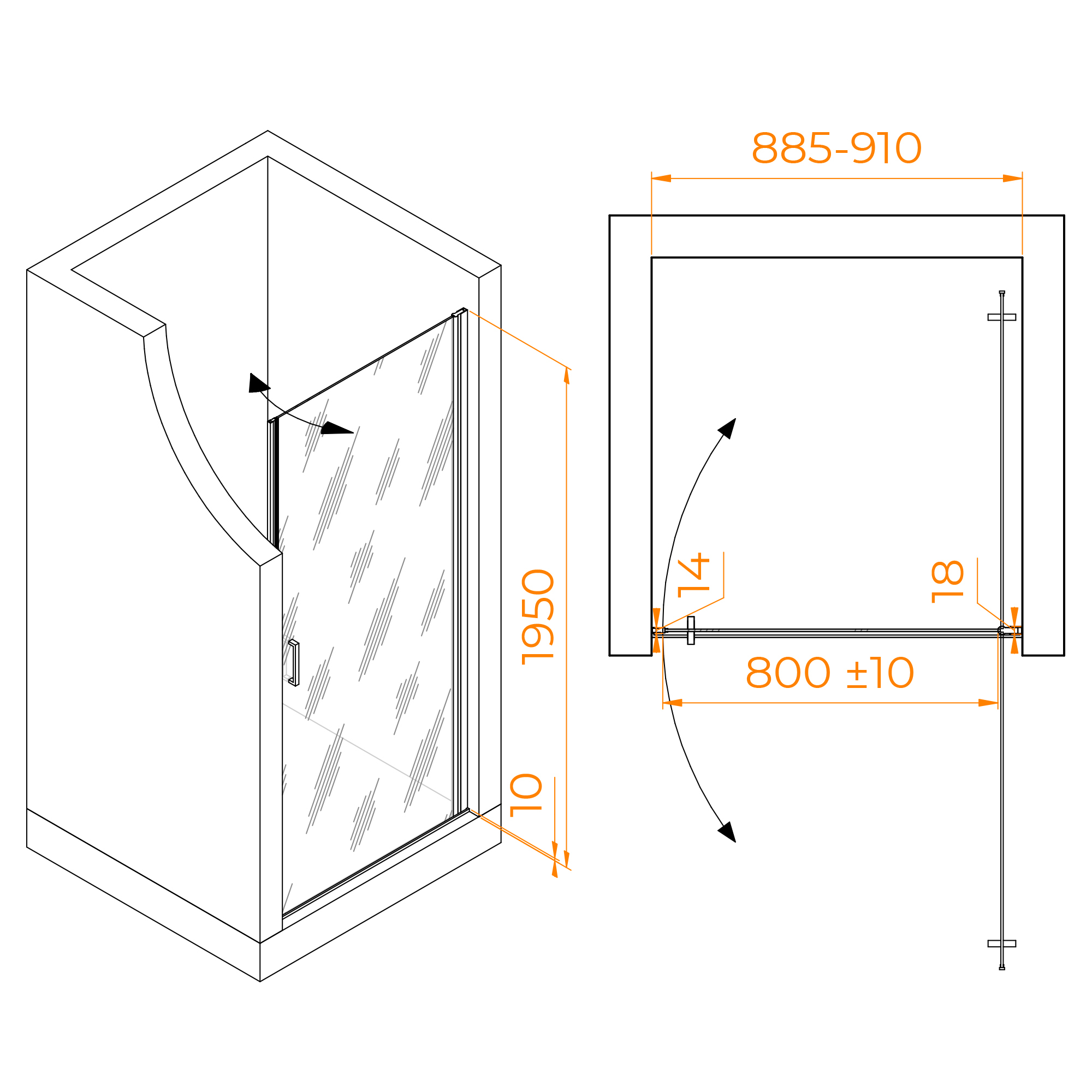 Душевая дверь изготовлена из стекла толщиной 6 мм, обеспечивающего превосходную прочность и долговечность. Прозрачный цвет стекла создает современный и открытый вид, а хромированный цвет профиля добавляет нотку элегантности. Общая высота двери составляет 1950 мм, что делает ее подходящей для большинства стандартных душевых кабин.