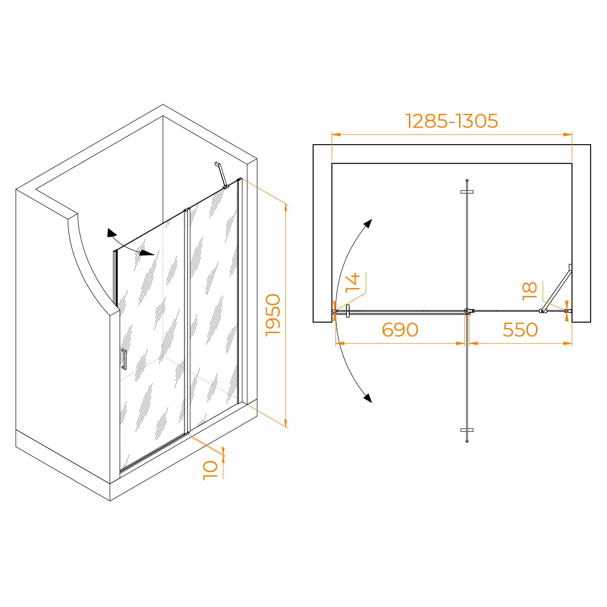 RGW 351200413-11 Душевая дверь 130*195 RGW LE-004 Хром/Прозрачное/6 мм