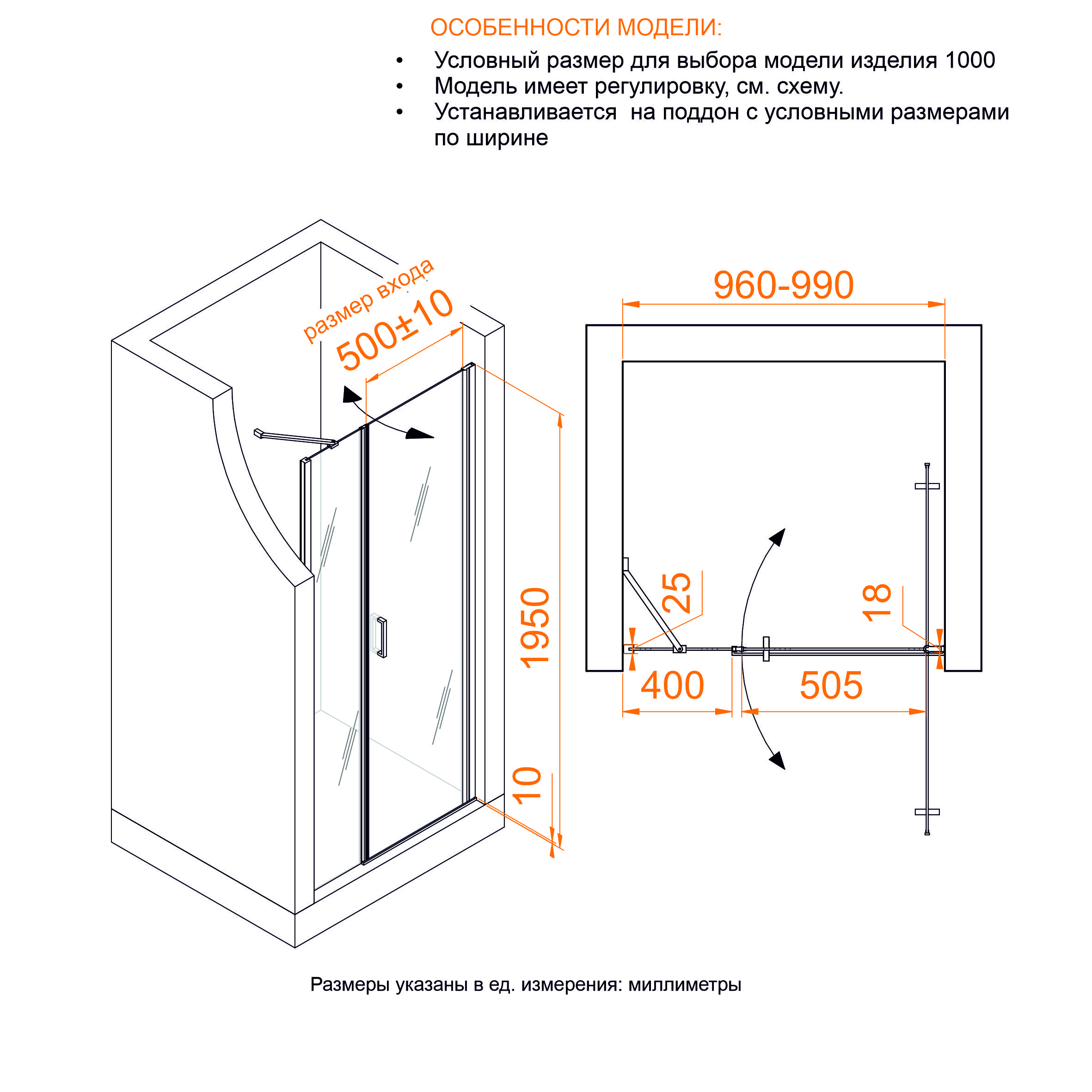 RGW 351200864-11 Душевая дверь 60*40*195 RGW LE-008 (LE-003 + Z-09) Хром/Прозрачное/6 мм (Easy)