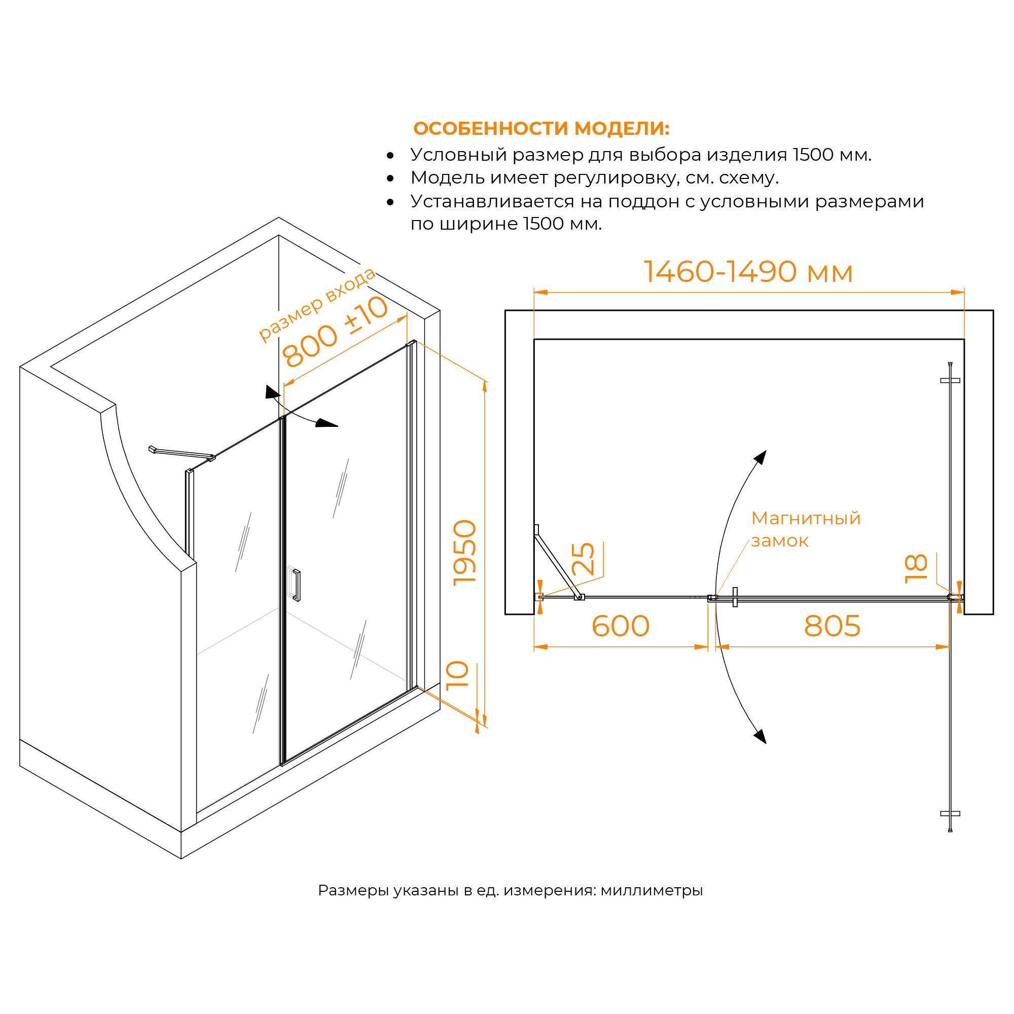 RGW 351200896-11 Душевая дверь 90*60*195 RGW LE-008 (LE-003 + Z-09) Хром/Прозрачное/6 мм (Easy)