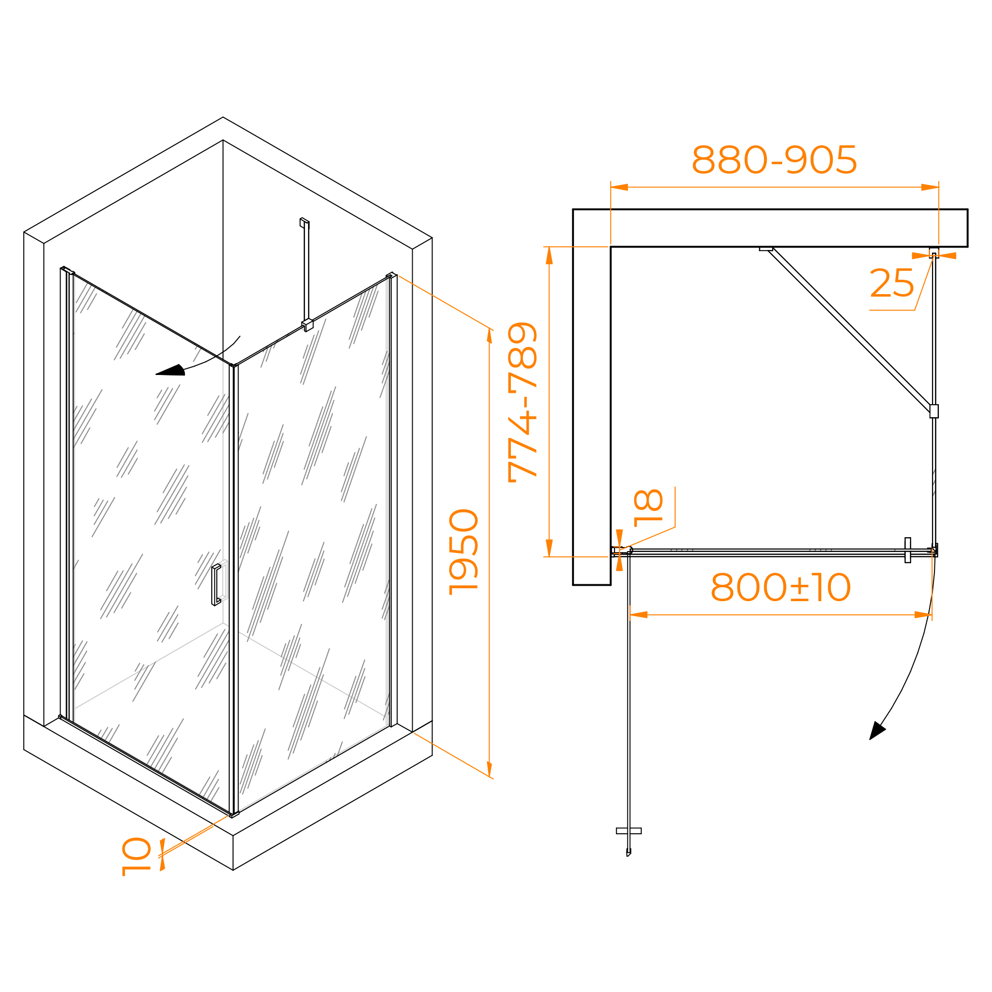 RGW 351203498-11 Душевой уголок 90* 80*195 RGW LE-034 (LE-003 + Z-14) Прямоуг./Хром/Прозрачное/6 мм (Easy)