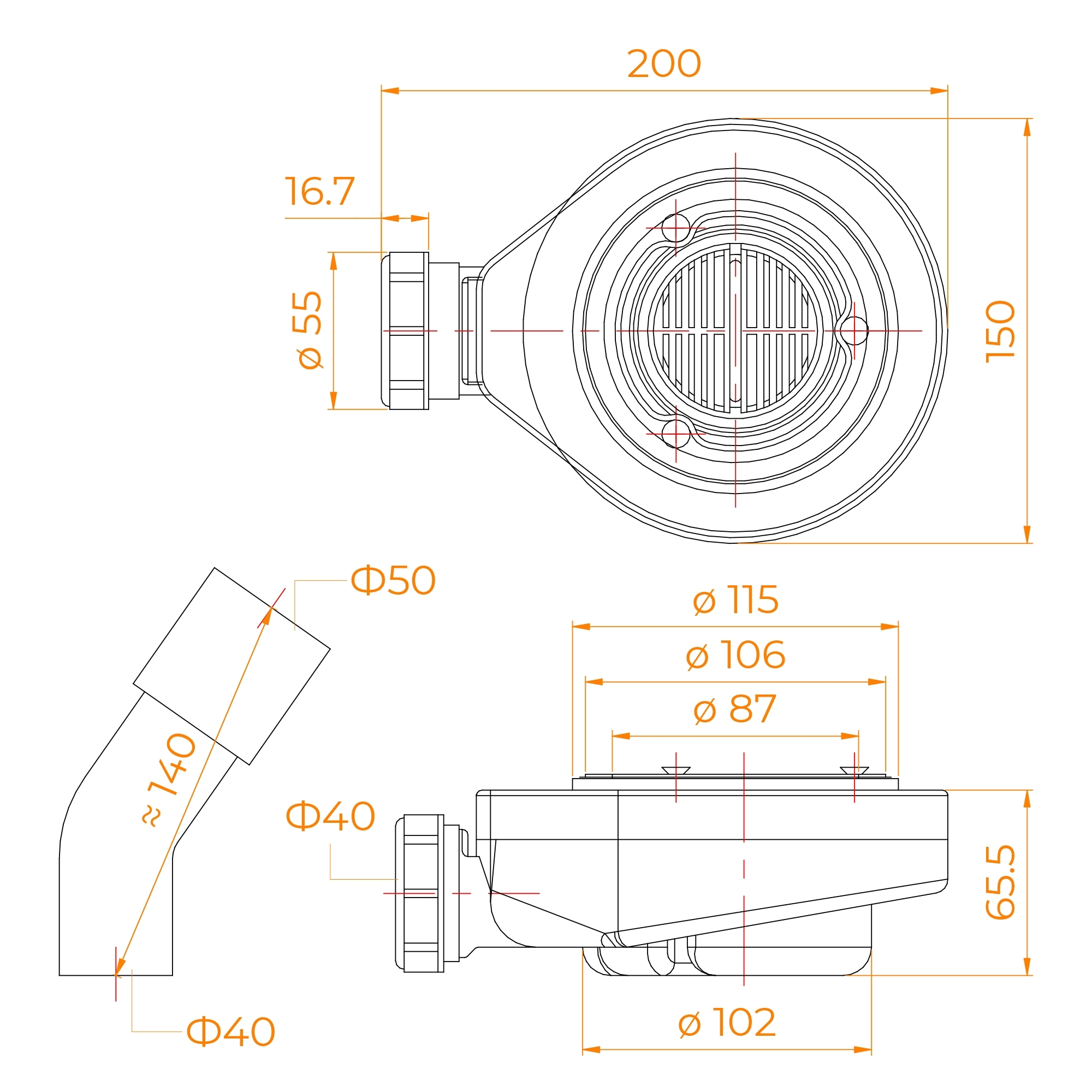 • высокая пропускная способность сифона 40 л/мин. обеспечивает быстрый сток воды,что позволяет компенсировать отсутствие глубокой купели в поддоне.