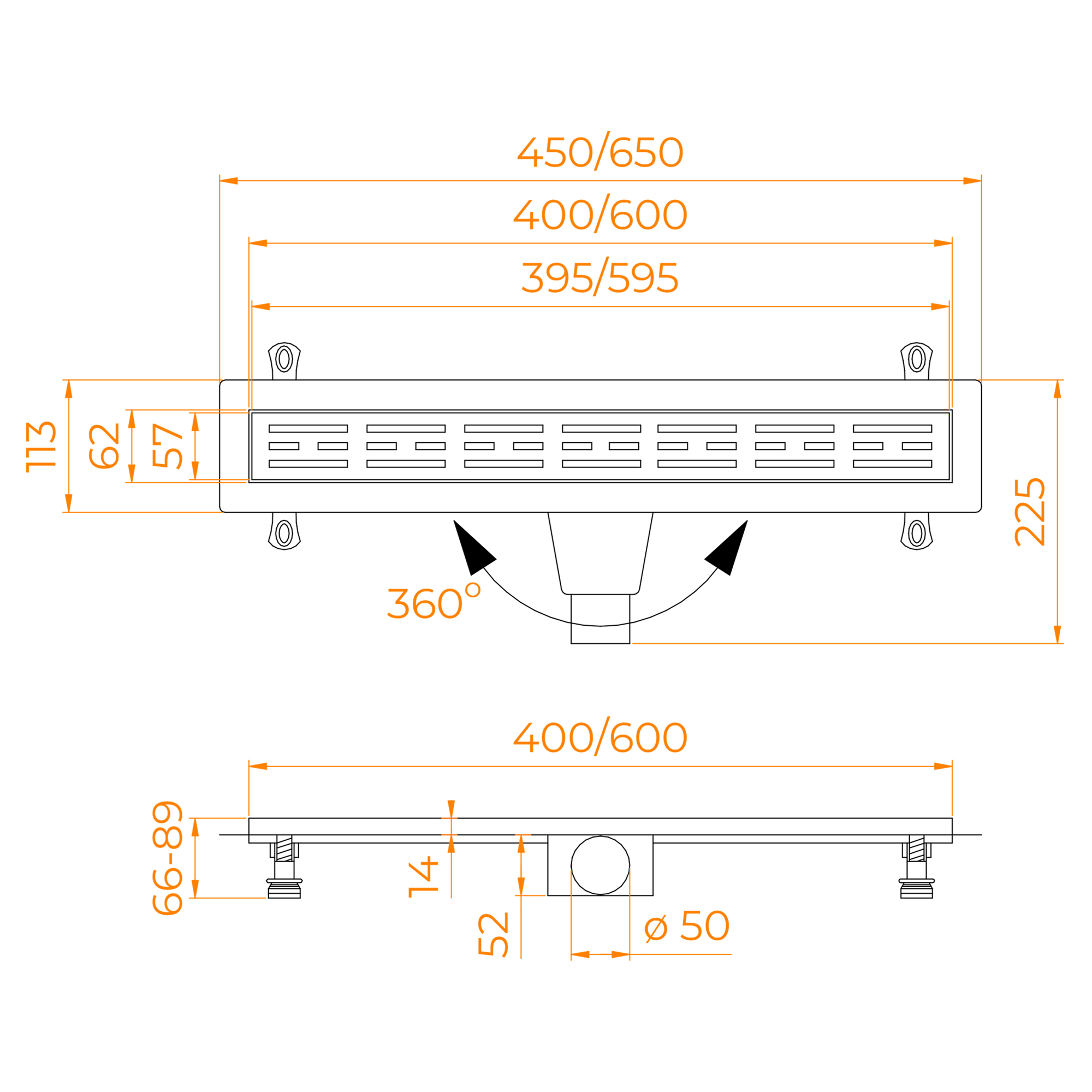 RGW 60213040-06 Душевой лоток Drain Leo-30-40 прямой 400 Золото браш ? 50 мм на ножках, сифон