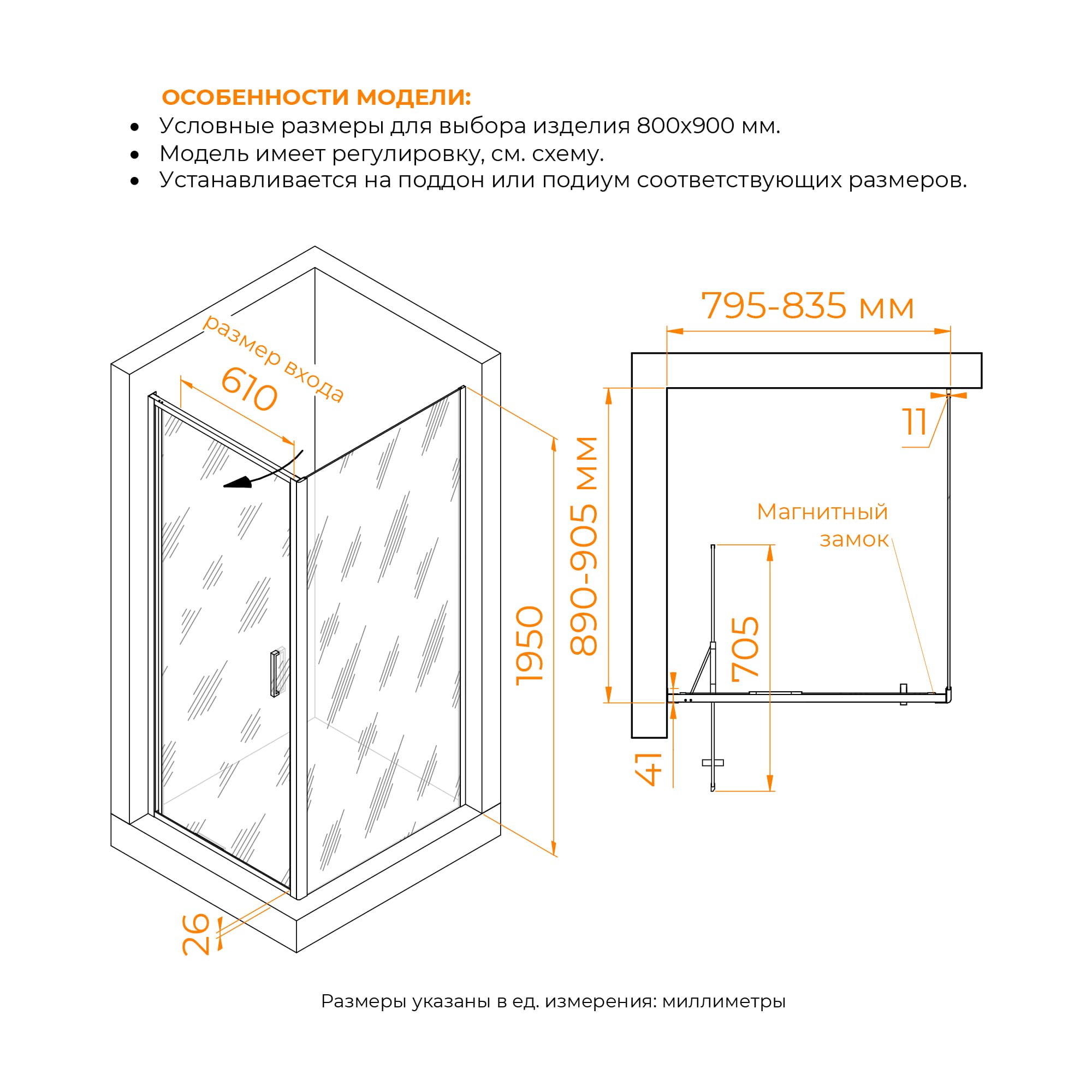 RGW 7032145289-14 Душевой уголок 80*90*200 RGW SV-145-2B (SV-05-2B + Z-050-3B) Прямоуг./Чёрный/Прозрачное/8 мм (Easy)
