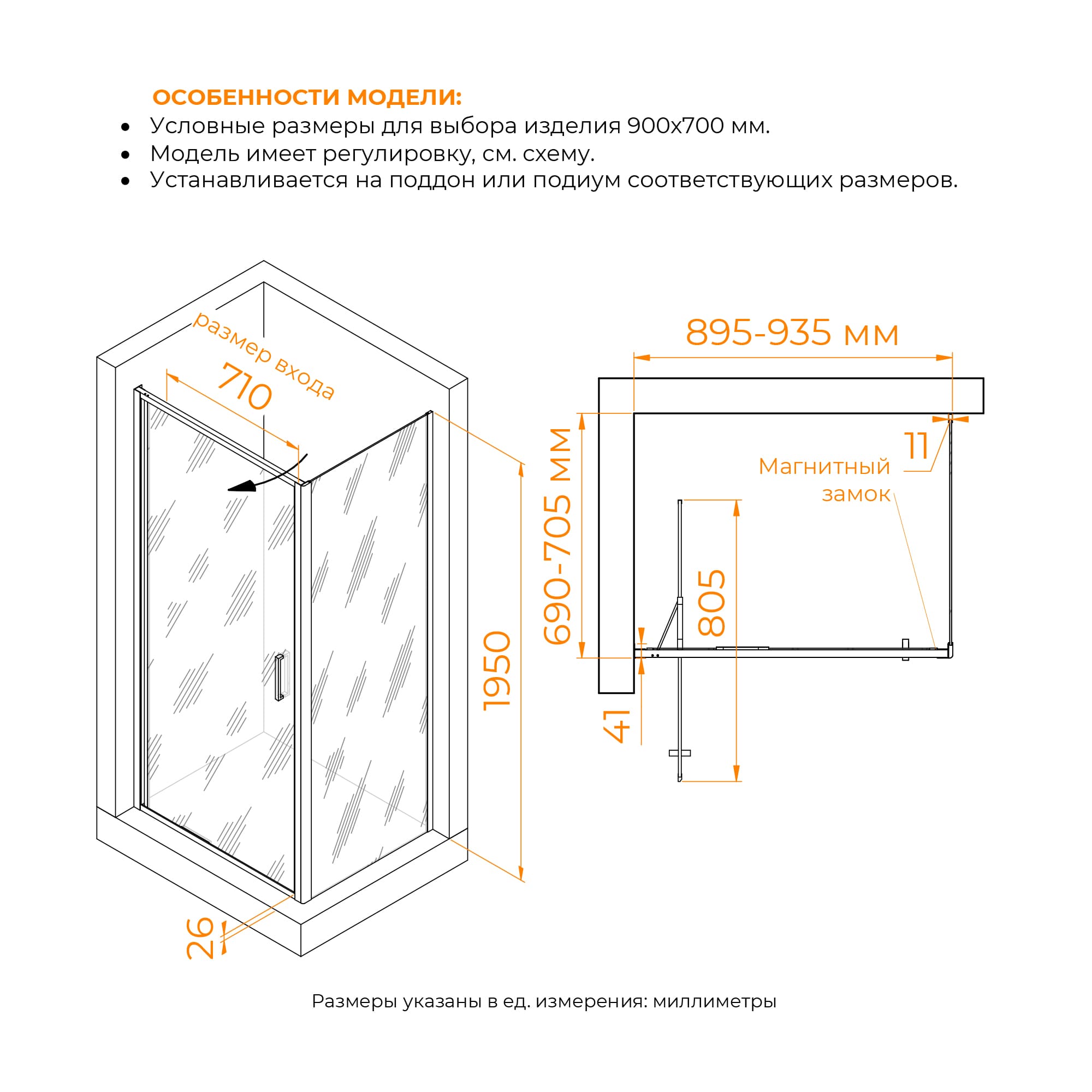 RGW 7032145297-11 Душевой уголок 90*70*200 RGW SV-145-2 (SV-05-2 + Z-050-3) Прямоуг./Хром/Прозрачное/8 мм (Easy)