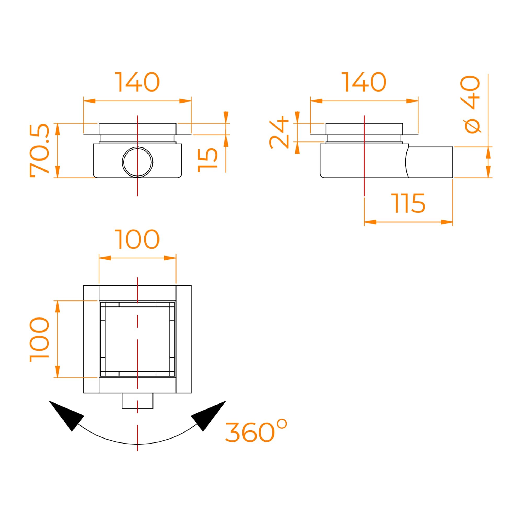 RGW 79211000-04 Душевой трап RGW SDR-10B-10 квадрат 100*100 Черный ? 40 мм без ножек, сифон, переходник 40/50