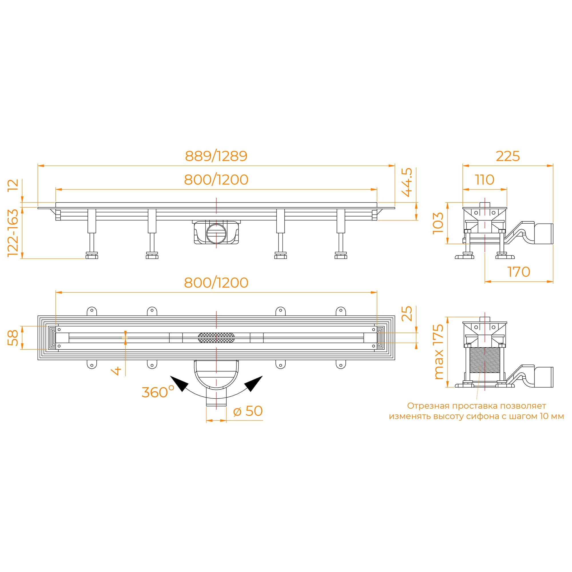 RGW 79215512-04 Душевой трап RGW SDR-55B-120 щелевой 1200 Черный ? 50 мм сифон + ножки