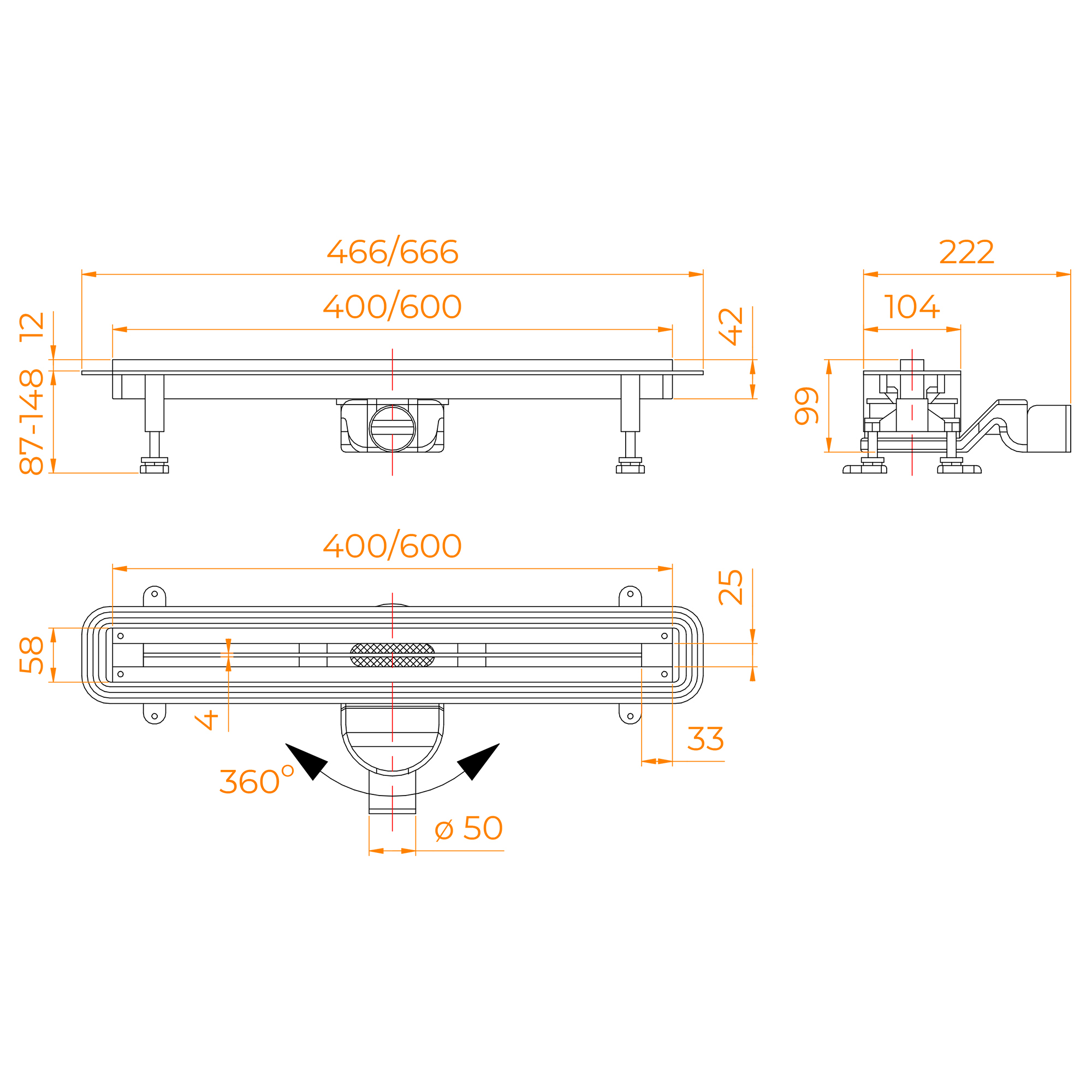RGW 79215640-01 Душевой трап RGW SDR-56-40 щелевой 400 Хром ? 50 мм сифон + ножки